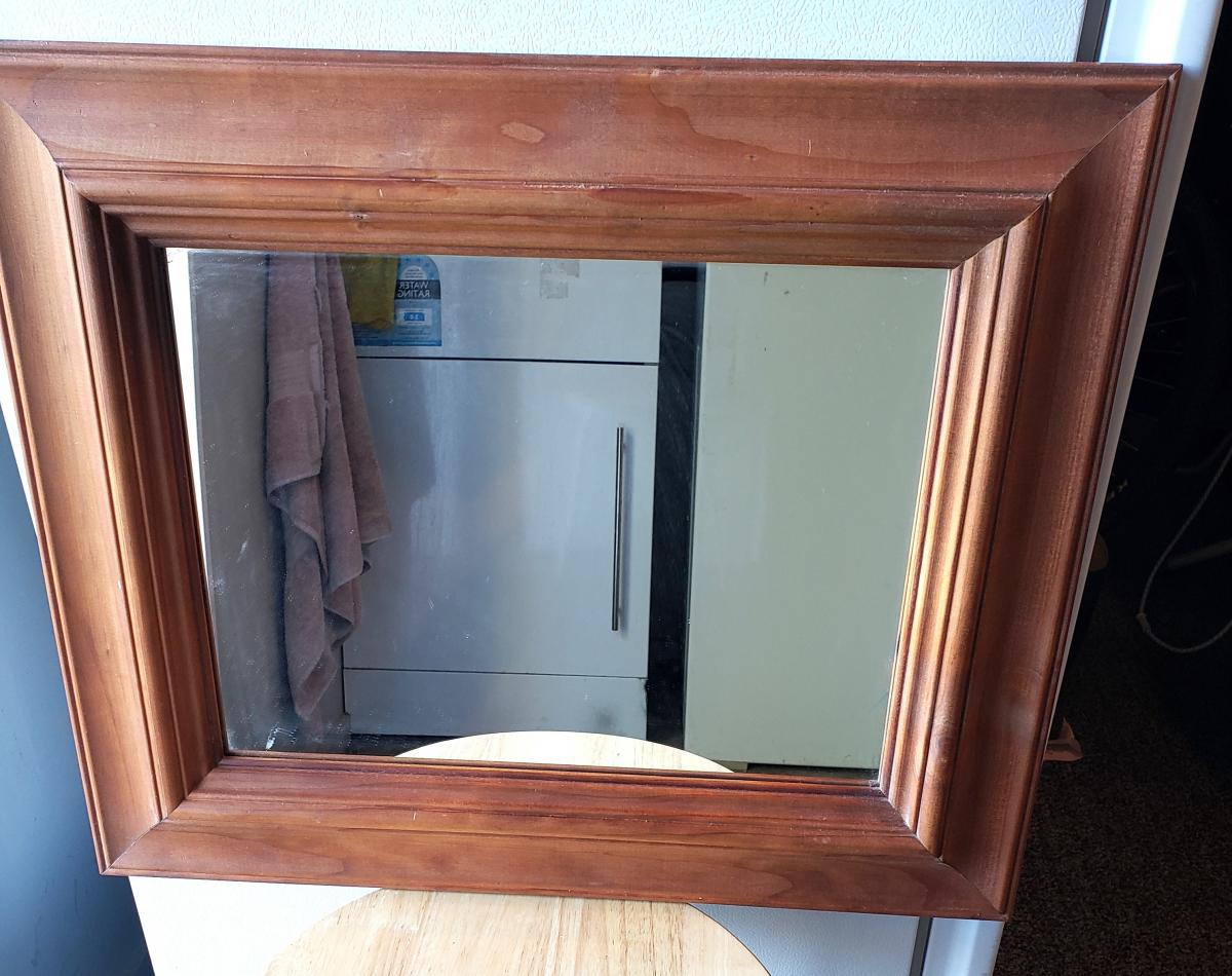 Can be hung in either direction. This mirror allowed me to photograph it without my image showing in the mirror. Maybe it is magic!!. You will have to buy to find out.