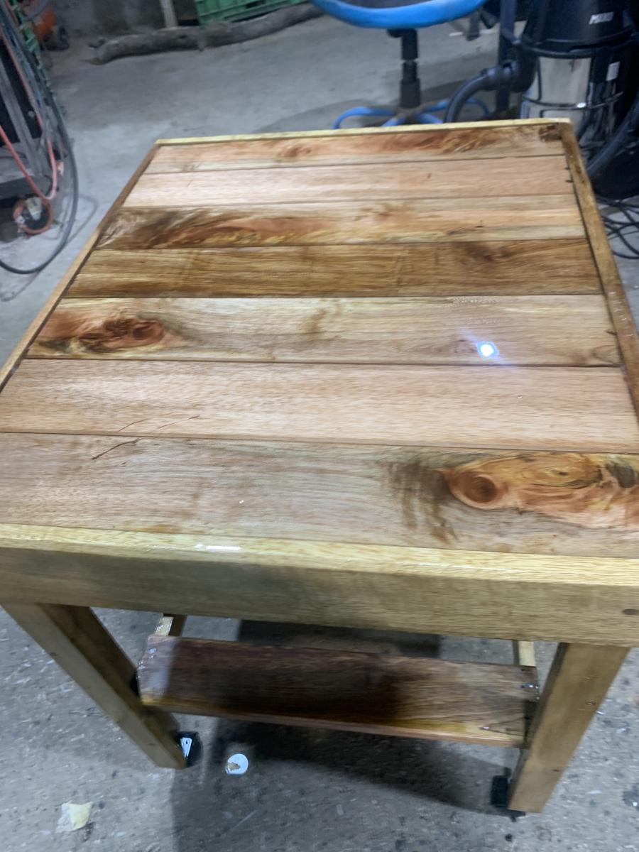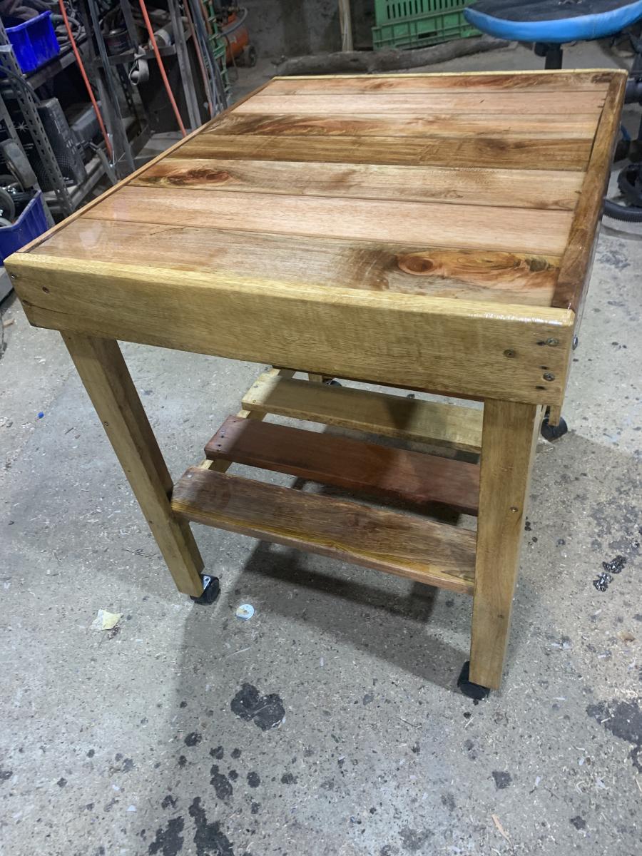 Coffee table made out of recycled used pallets with APOXY RESIN on the top to give it a glass like top. Hand made from recycled pallets.