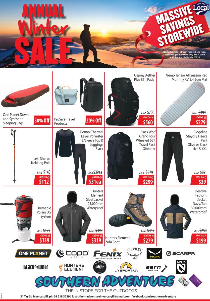 Save $$$ with our Annual Storewide Winter Sale from now till Saturday the 26th of July . Sale excludes goods already reduced and food .