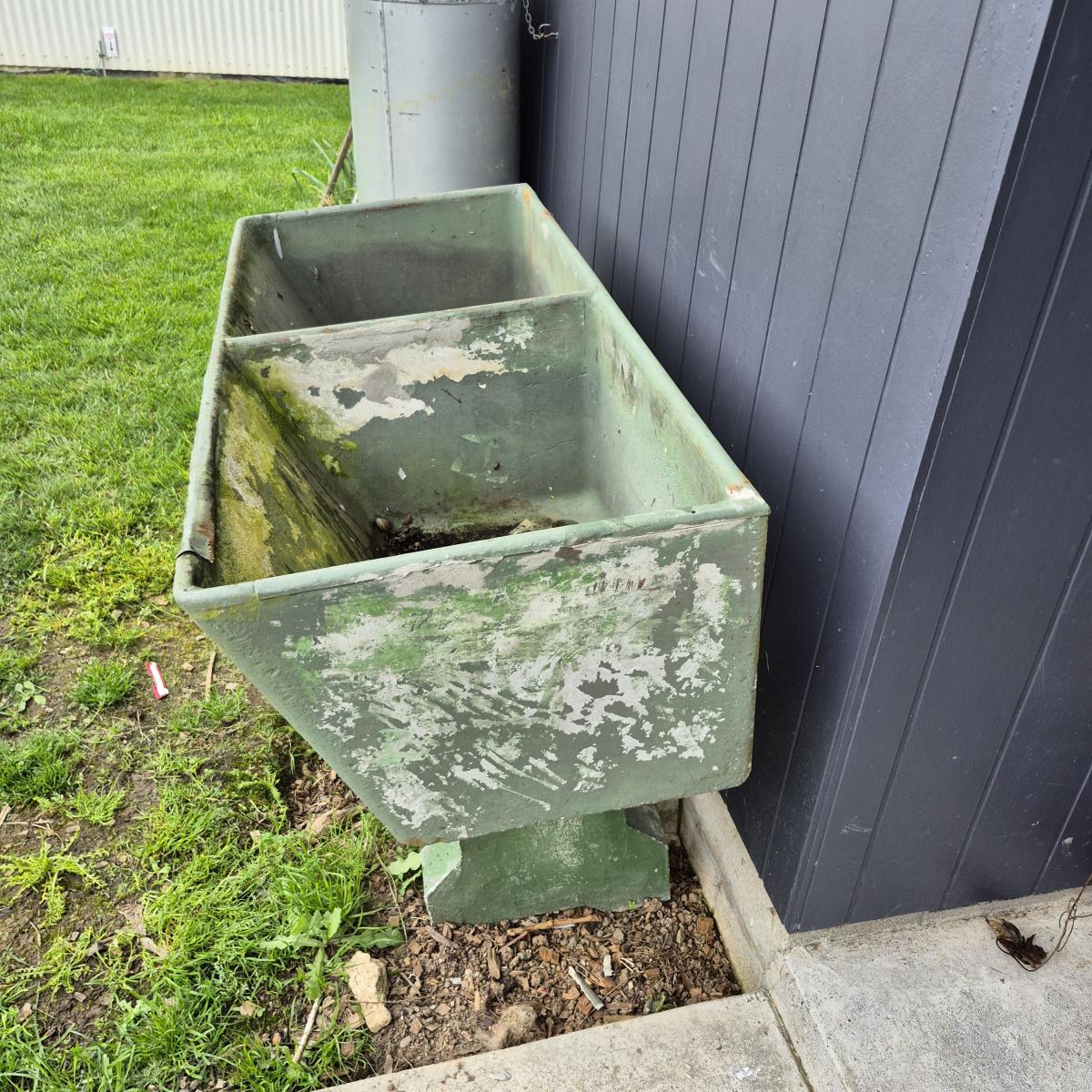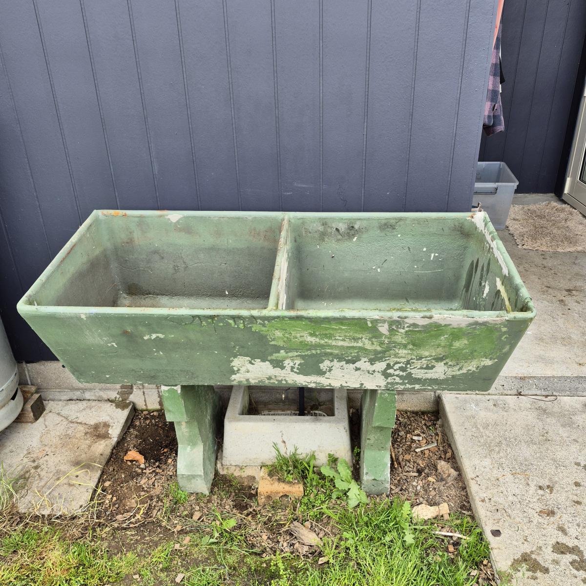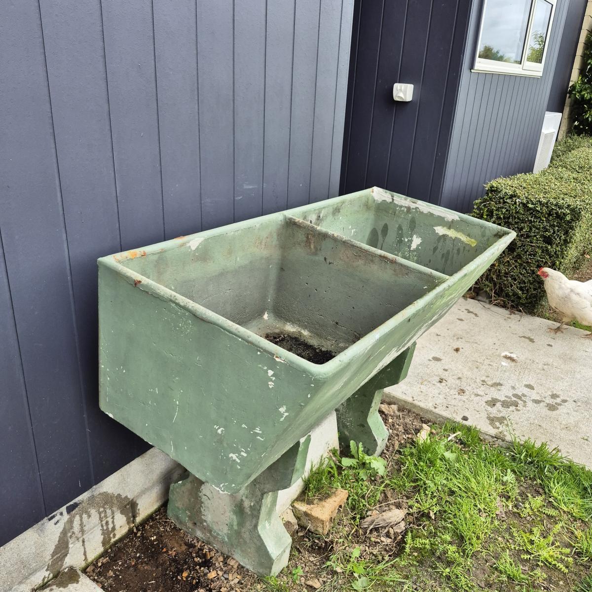 Double concrete tub with legs, can be restored for inside use or left as is for a great potting tub.