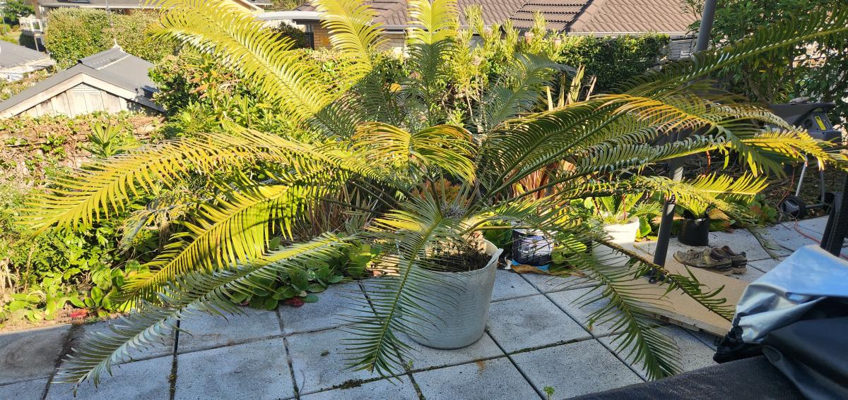 Lepidozamia Peroffskyana (Scaly Zamia) blub part circa 300mm x 300mm and is circa 3 meters indiameter.