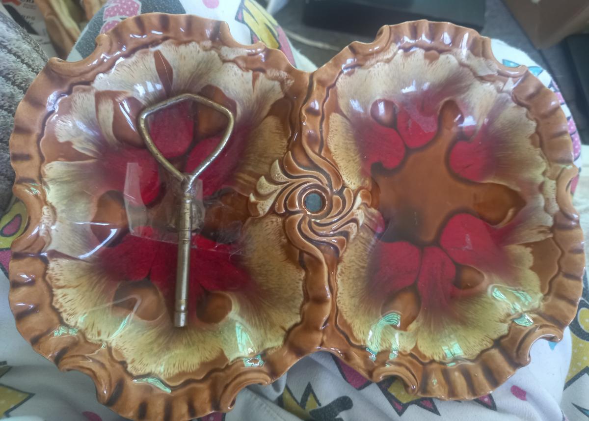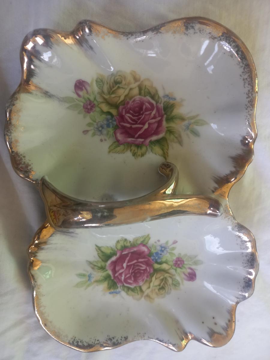 This lovely rose China dish would look great on a dressing table or on a side table. I'm not sure of the age but I know the lady who had it had it a long time, I have no use for it so I would love to see it go to a new home instead of me just carting it around. It's not been stamped so … View moreThis lovely rose China dish would look great on a dressing table or on a side table. I'm not sure of the age but I know the lady who had it had it a long time, I have no use for it so I would love to see it go to a new home instead of me just carting it around. It's not been stamped so it's not a fancy piece but it's very cute.