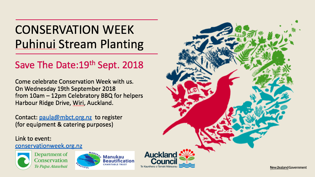 … View moreConservation Week 2018 is almost here and were on the lookout for 50 volunteers to help us plant 200 plants along the Puhinui Stream and remove litter.