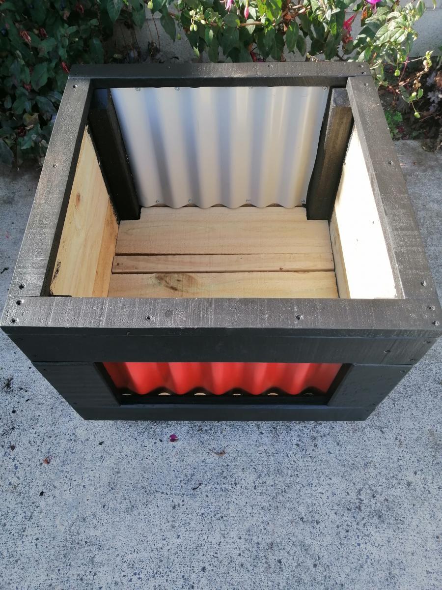 Made from treated timber and color coated corrugated iron, assembled with galvanised screws.
