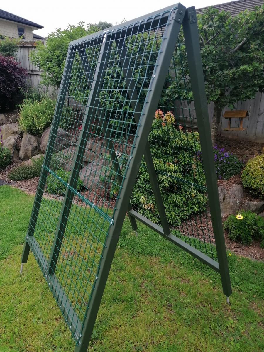 New. Made from 45X45 H3.2 dressed timber. Strong, robust, double sided. Solid steel pins at the bottom of the frame can be pushed into the ground giving excellent stability in windy conditions. Grow several varieties of beans at the same time, cucumbers, … View moreDimensions: Frame size 1800 H x 1200 W