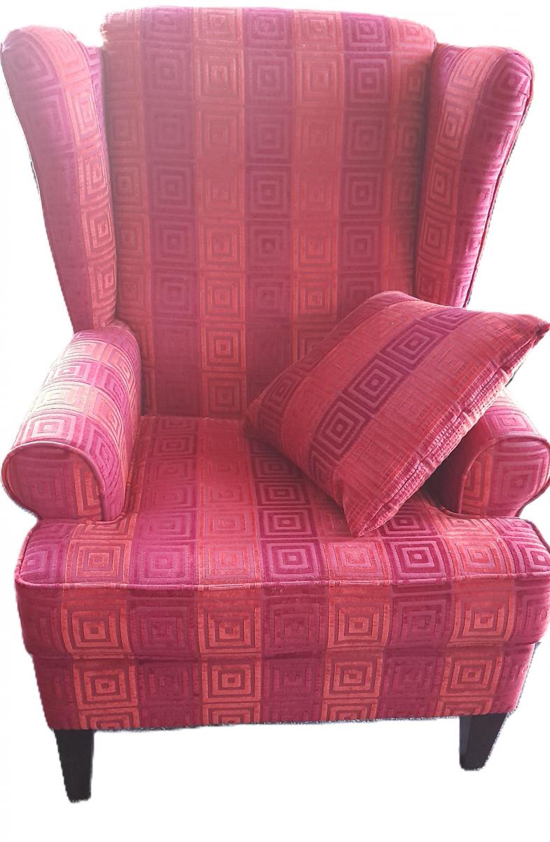 Danske Mobler winged back chair excellent condition - available for inspection and pick up from Bethlehem. See photo for fabric design and colour,