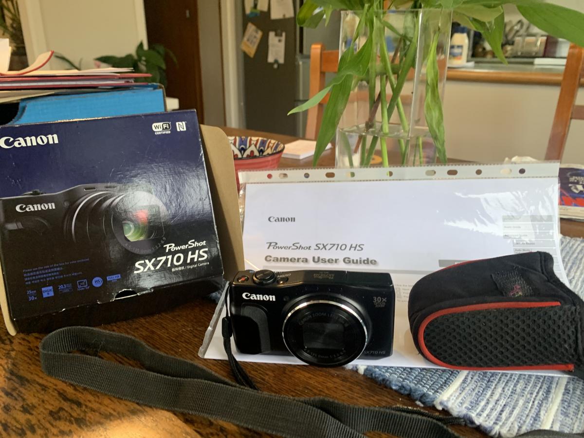 Both Canon. Power shot SX 710HS. 30x optical zoom with user guide wrist strap camera case original box. Needs battery and charger. Ex cond.
