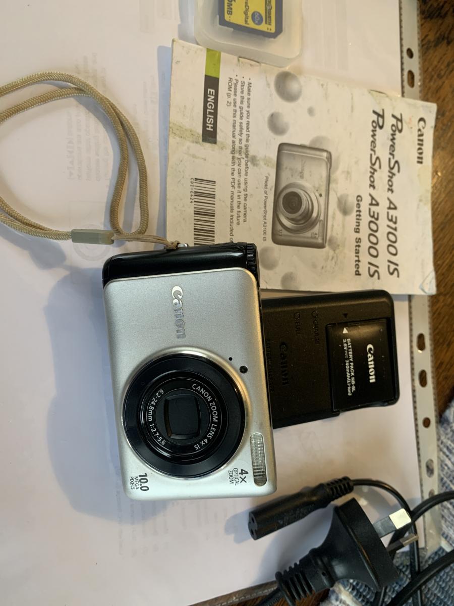 Powershot A3000 4x optical zoom with battery charger user guide wrist strap needs battery. God cond.