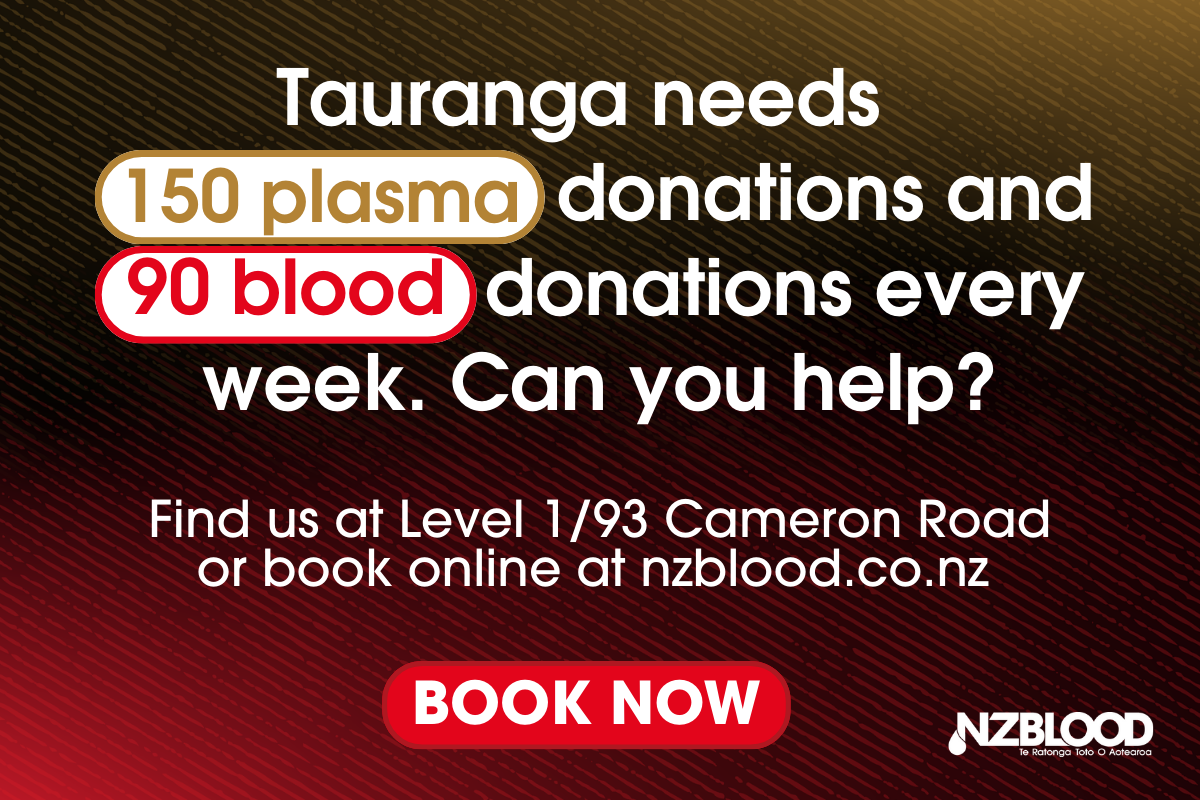 Every week, our Tauranga donor centre, located at Level 1, 93 Cameron Road, needs 150 plasma donations and 90 blood donations to keep up with growing demand.