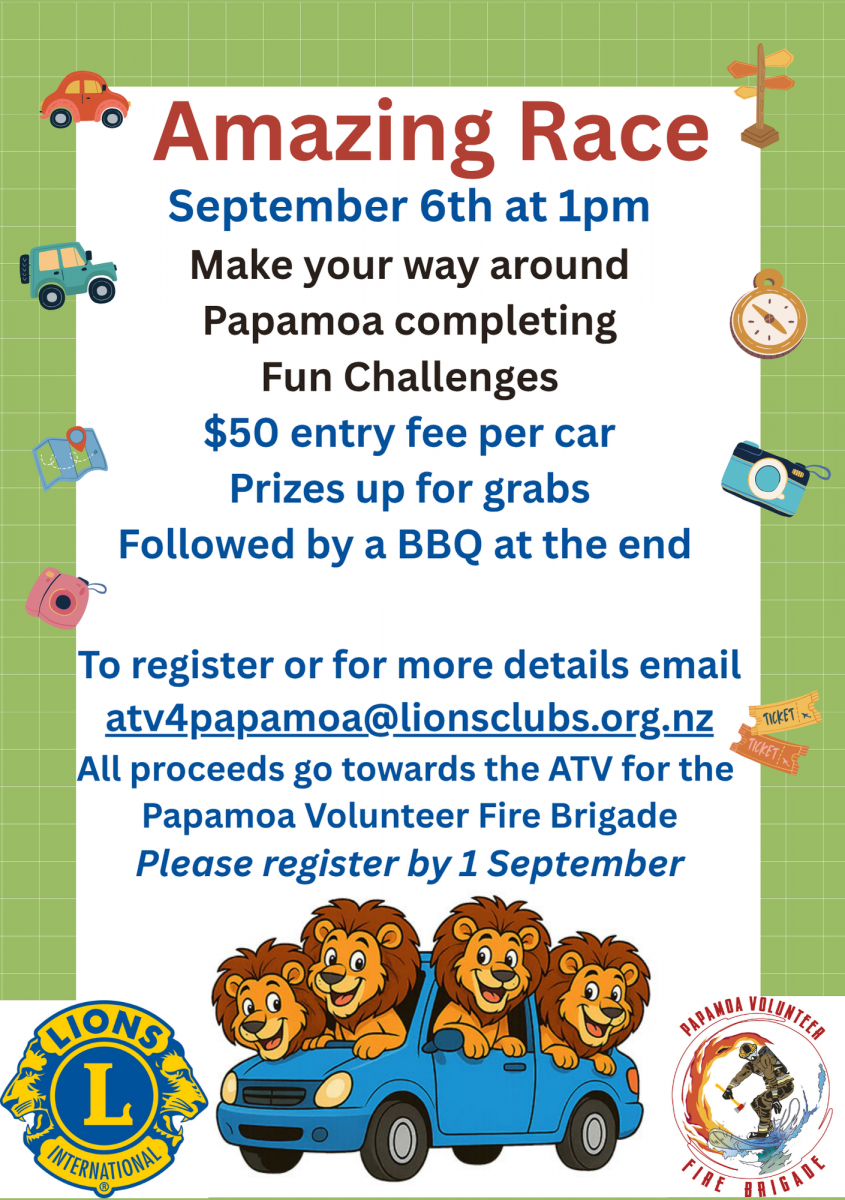 Register now be emailing: atv4papamoa@lionsclubs.org.nz
