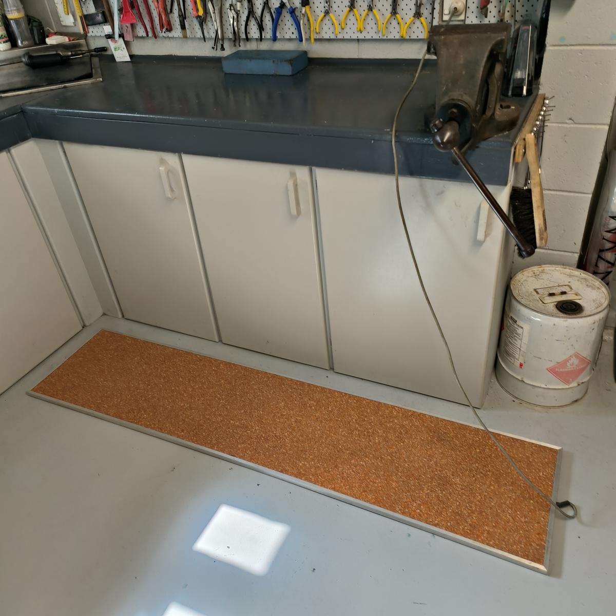 180cm long x 40cm wide It has been used both as a foot warmer at a workbench and at other times under a long desk.