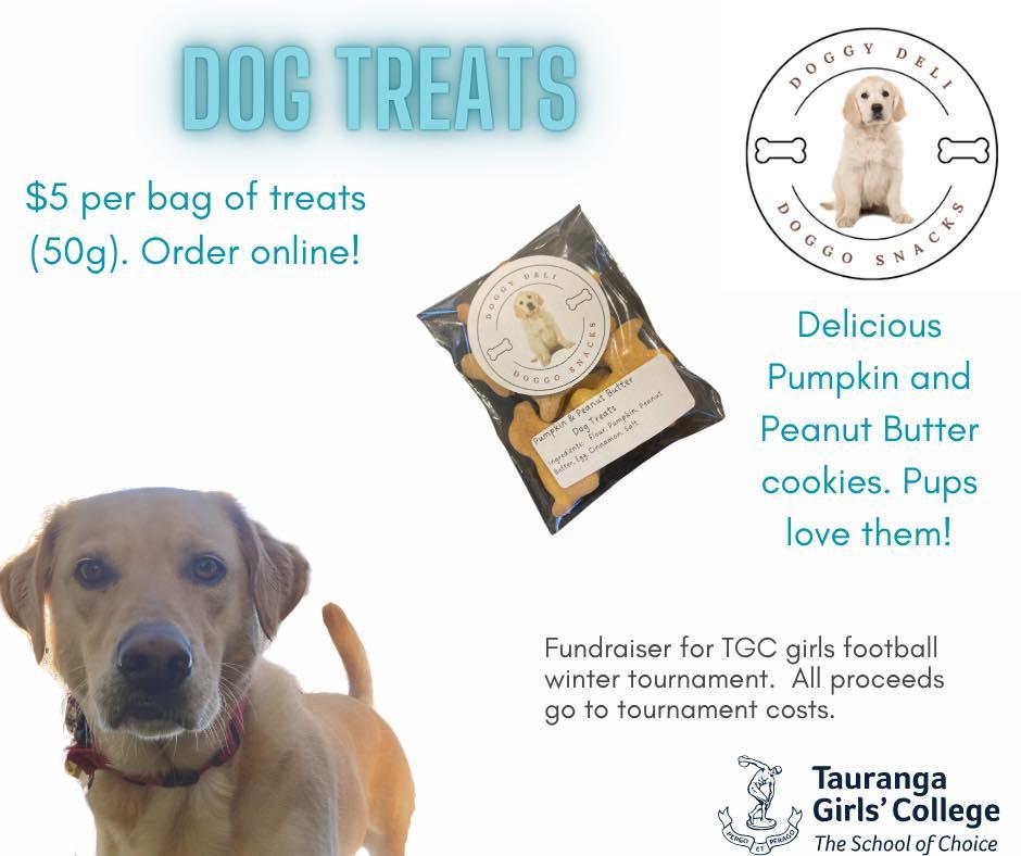 Free delivery in Tauranga or can be collected from … View moreThe Tauranga Girls College Football Team are off to Winter Tournament in Napier soon and need your support. The Team are making dog treats to sell to fundraise for the trip.