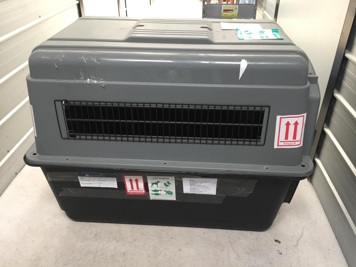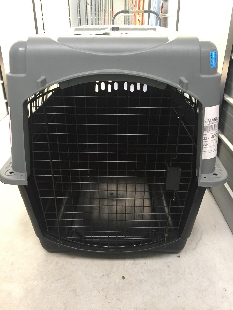 The travel crate is suitable for a small/medium size dog (was purchased to suit my parents 25kg dog). From looking around online and approximate measurements taken, I believe it is an "Intermediate" size crate. Was used only once to transport from Vietnam to NZ. Comes with a water bottle and screws for assembly.