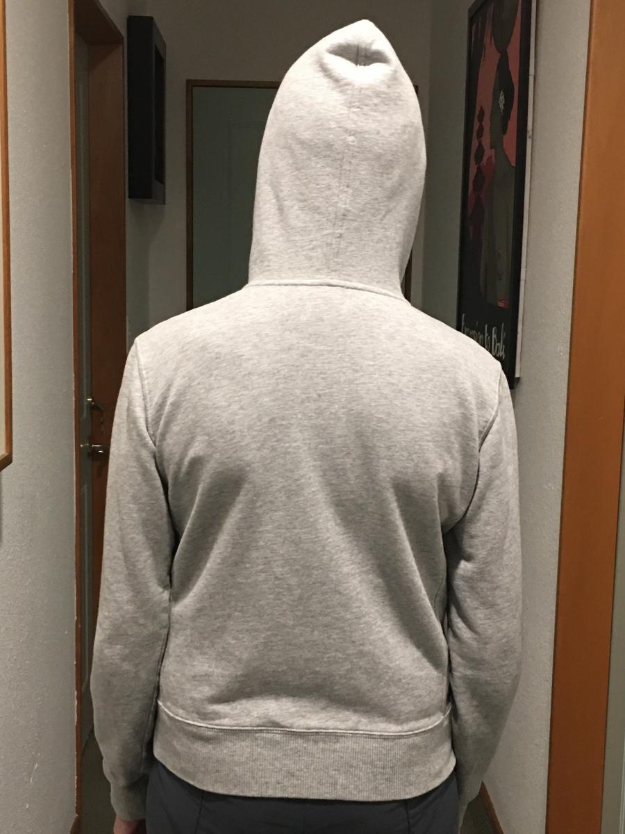 Shoulders: not easy to measure as sleeve goes all the way to hood