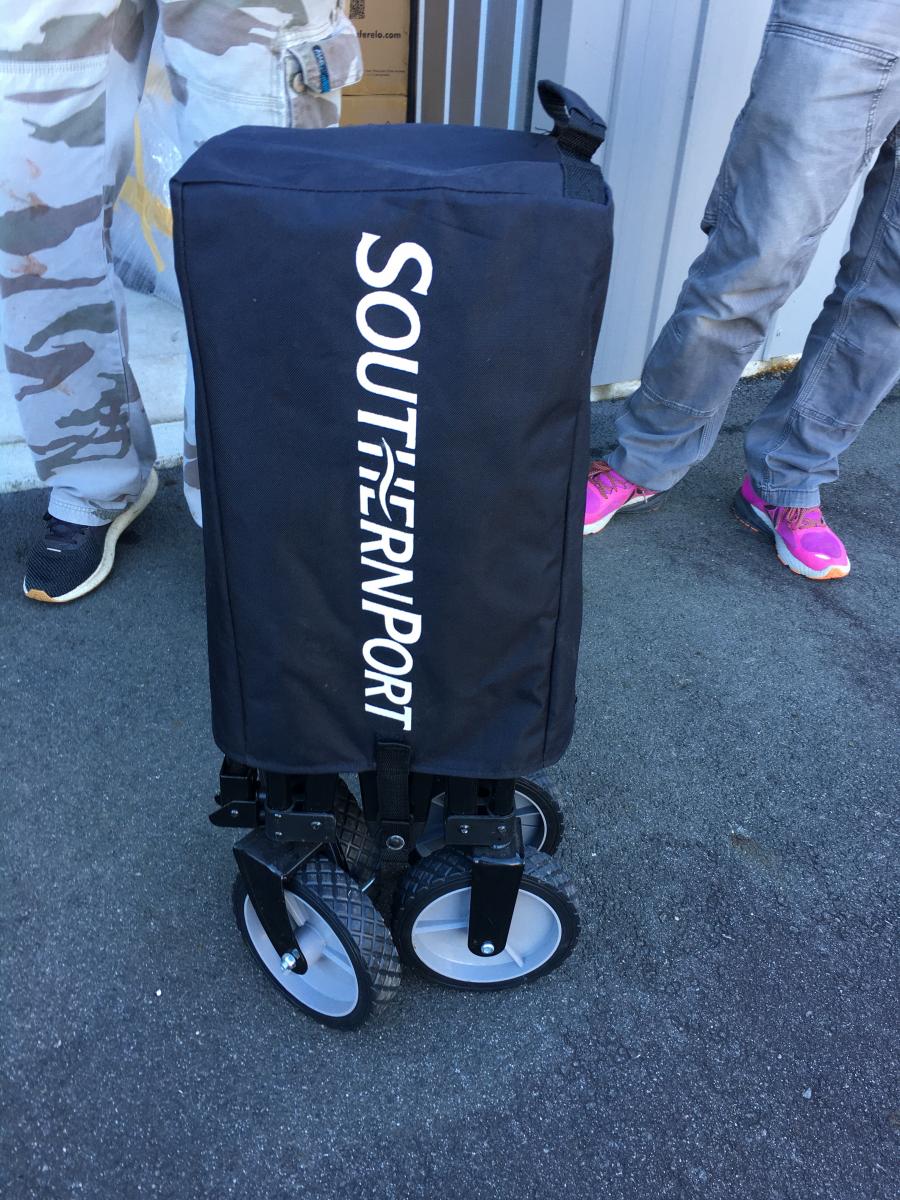 - Basket: 470mm (w) x … View moreThis listing is for the pictured folding/collapsable hand cart only. It is in excellent condition as only used once or twice around the house. Comes with cover, straps and folding pad for bottom of cart.