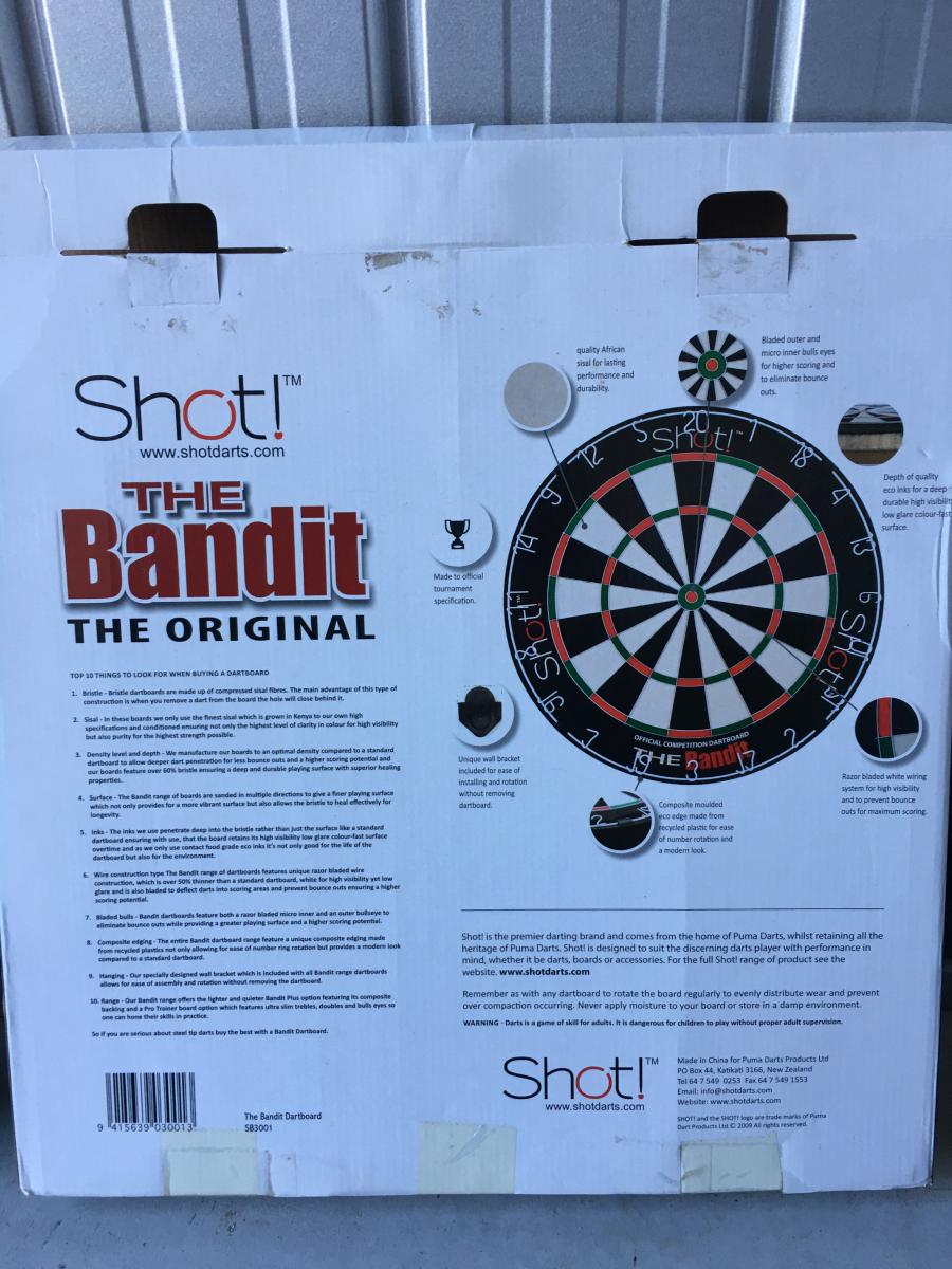 This listing is for the pictured '’The Bandit - The Original" dartboard. This board has had minimal use and is still in excellent condition.