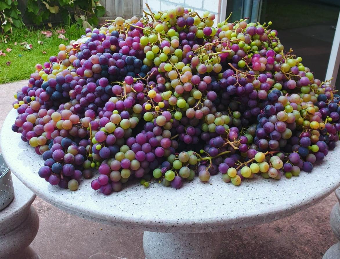 Huge crop of grapes have been picked and cleaned... more on the vine.