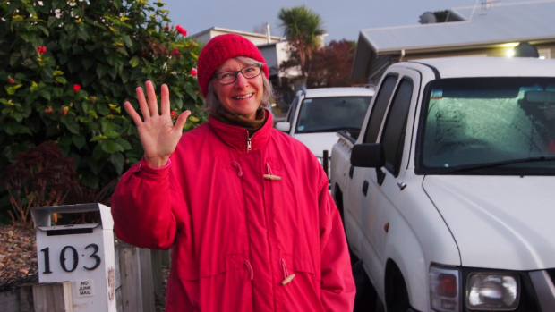 This morning Sheila Tippett and her neighbours used their cars to block access to a new subdivision going up in Welcome Bay.