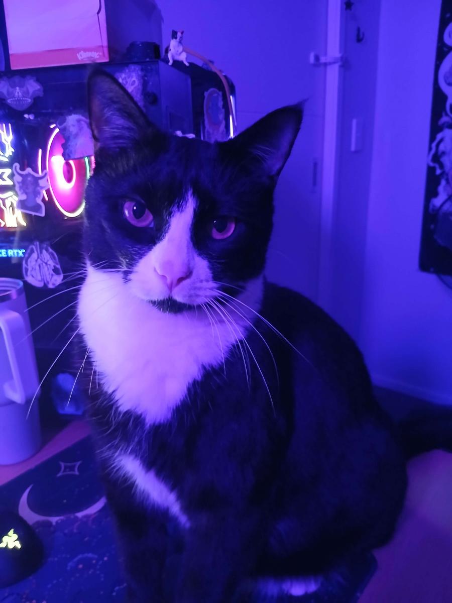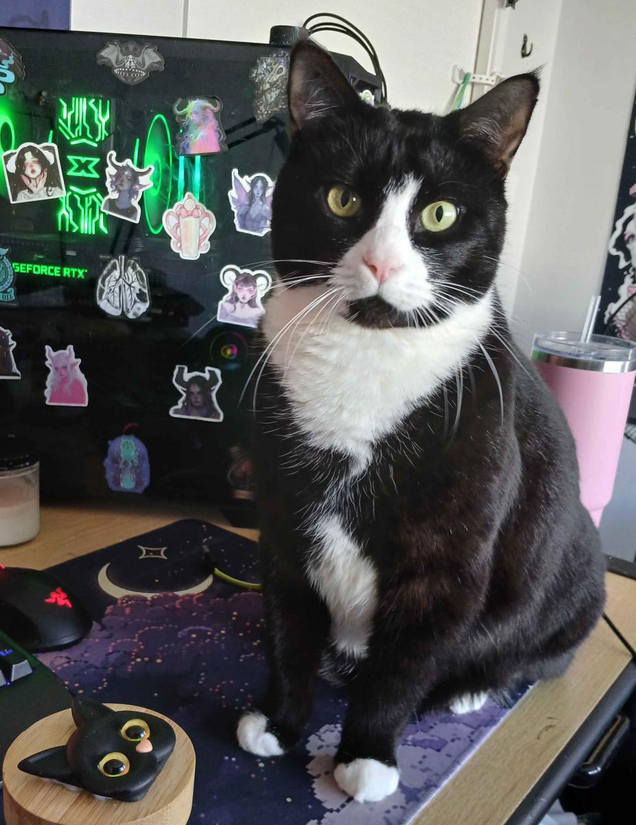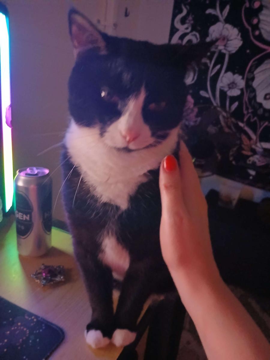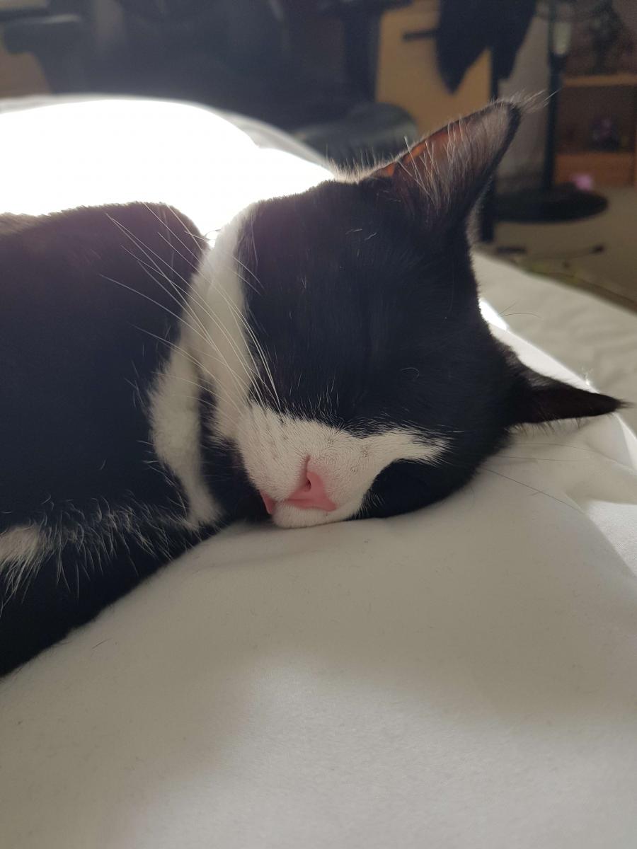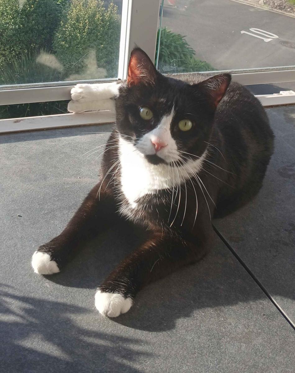 My name means socks! I am a tuxedo American Shorthair, with a pink nose and pink and black toes. I've already had kittens when I was younger and have been desexed. I am in great health.