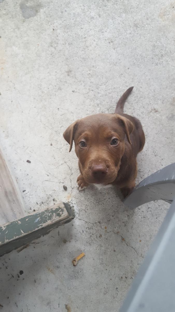 This is Milo he is 5 months old. Such a good Dog! Toilets outside no problem and is great with my toddler. I am needing a new home for him as he is getting so bored when I am at work he needs a better house (gated)