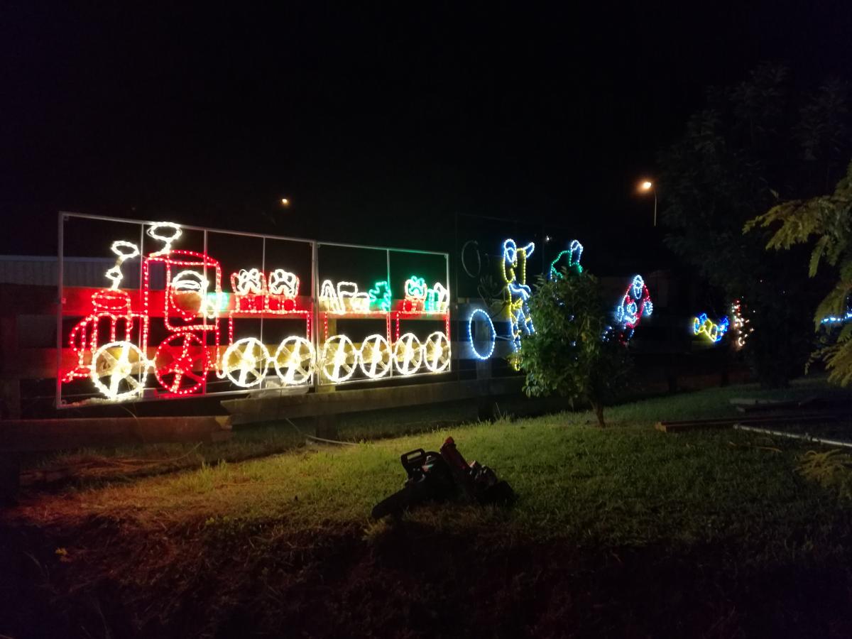WE ARE ALL GO for the Christmas Lights displays at 109c Centennial Ave in Te Aroha. The last 2 days have been a repairing and mending time, drying out plugs and hoping not to blow up the entire Te Aroha and the surrounding areas power supply after the storms in the past 2 days. Open tonight at