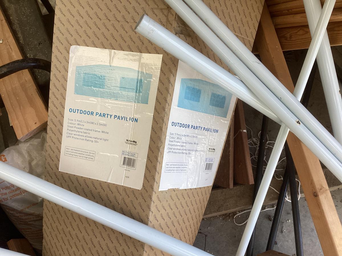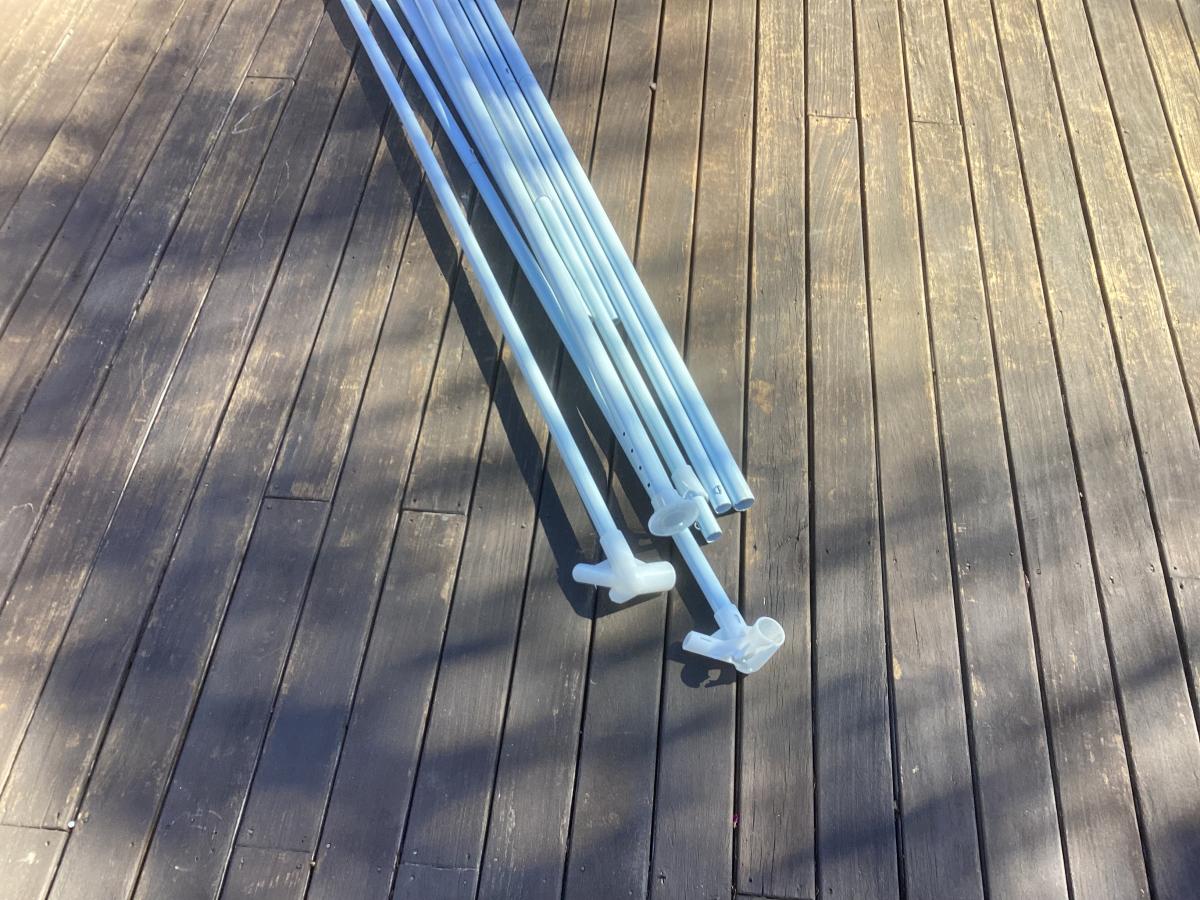 Got blown with the wind and several poles damaged. Canopy in good condition and side walls never used. Suit person who has similar for parts.