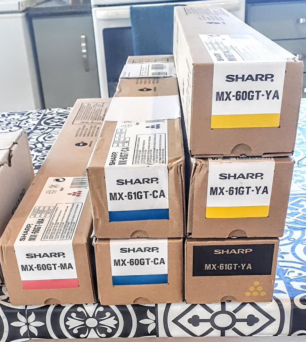 6 x UNUSED Toner Cartridges for business copiers - YELLOW, CYAN, MAGENTA + 1 toner collection container. OPEN TO OFFERS