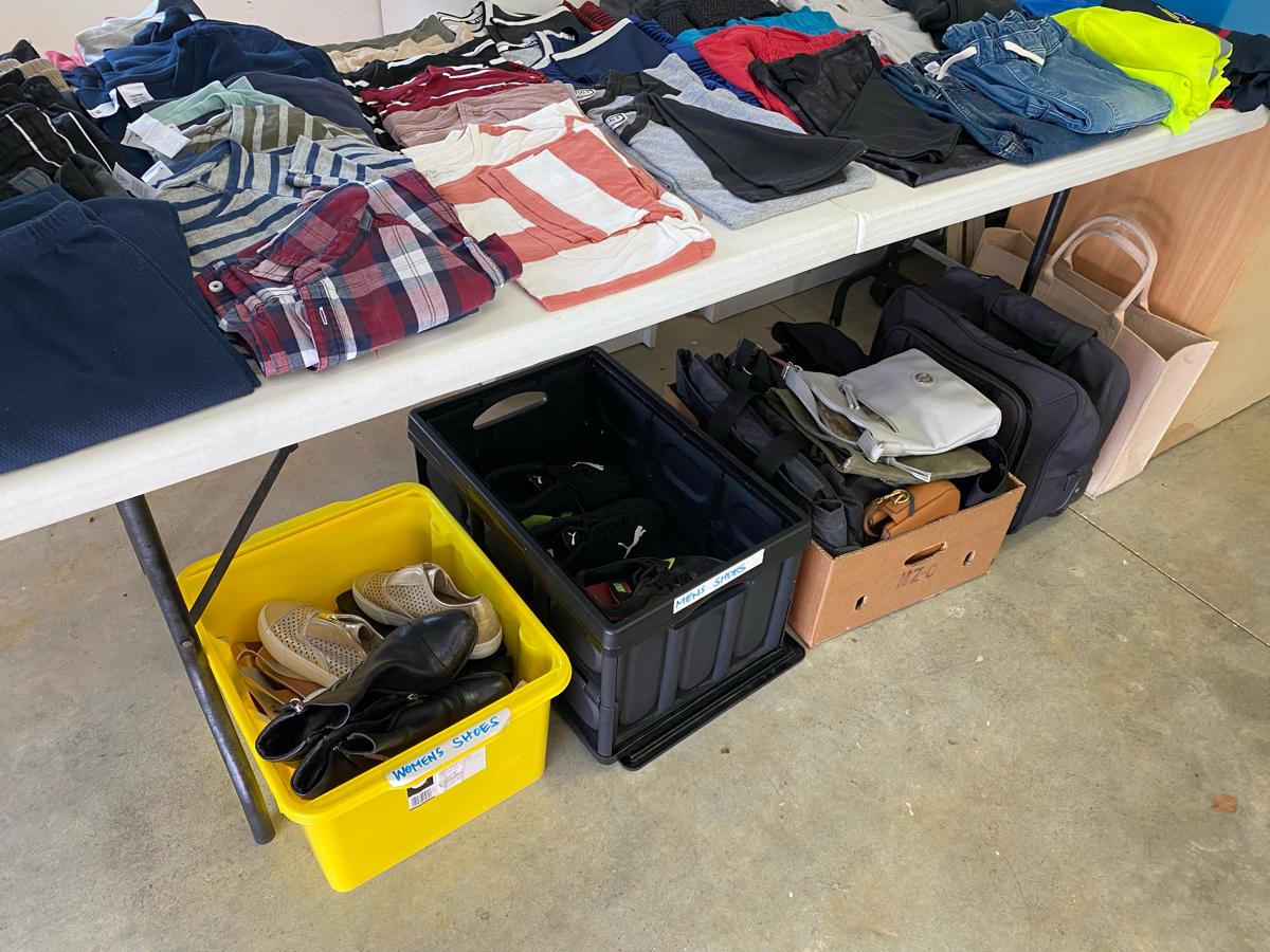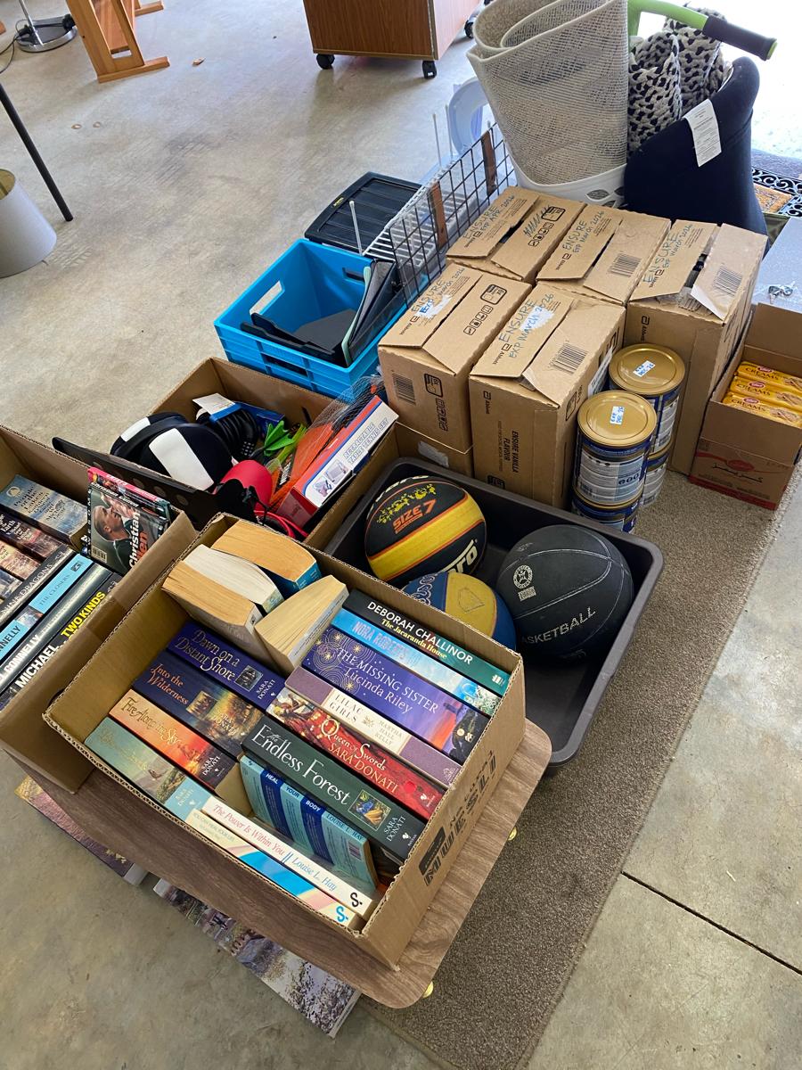 - FURNITURE side board unit, drawers, shelving units, king single head board, sewing cabinet, metal shelving, bean bag.