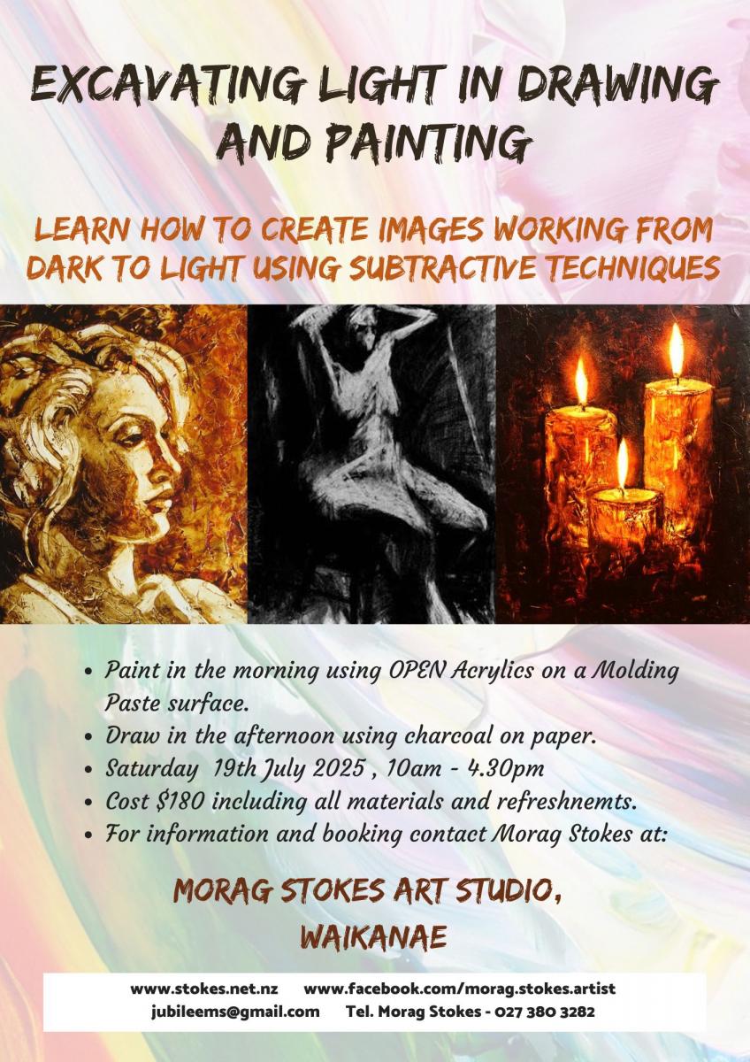 I have one place available in this up coming workshop at my Waikanae studio. It's suitable for beginners as well as experienced artists and all materials and refreshments are provided.