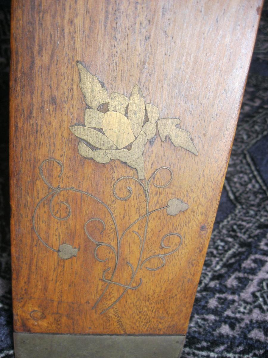 Could be used as a decorative item, footstool, or whatever. Brass feet and inlaid decoration.
