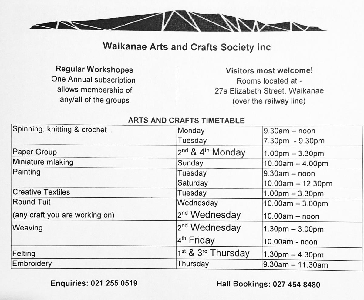 waikanaeartsandcraftssoc@gmail.com or 021 255 0519