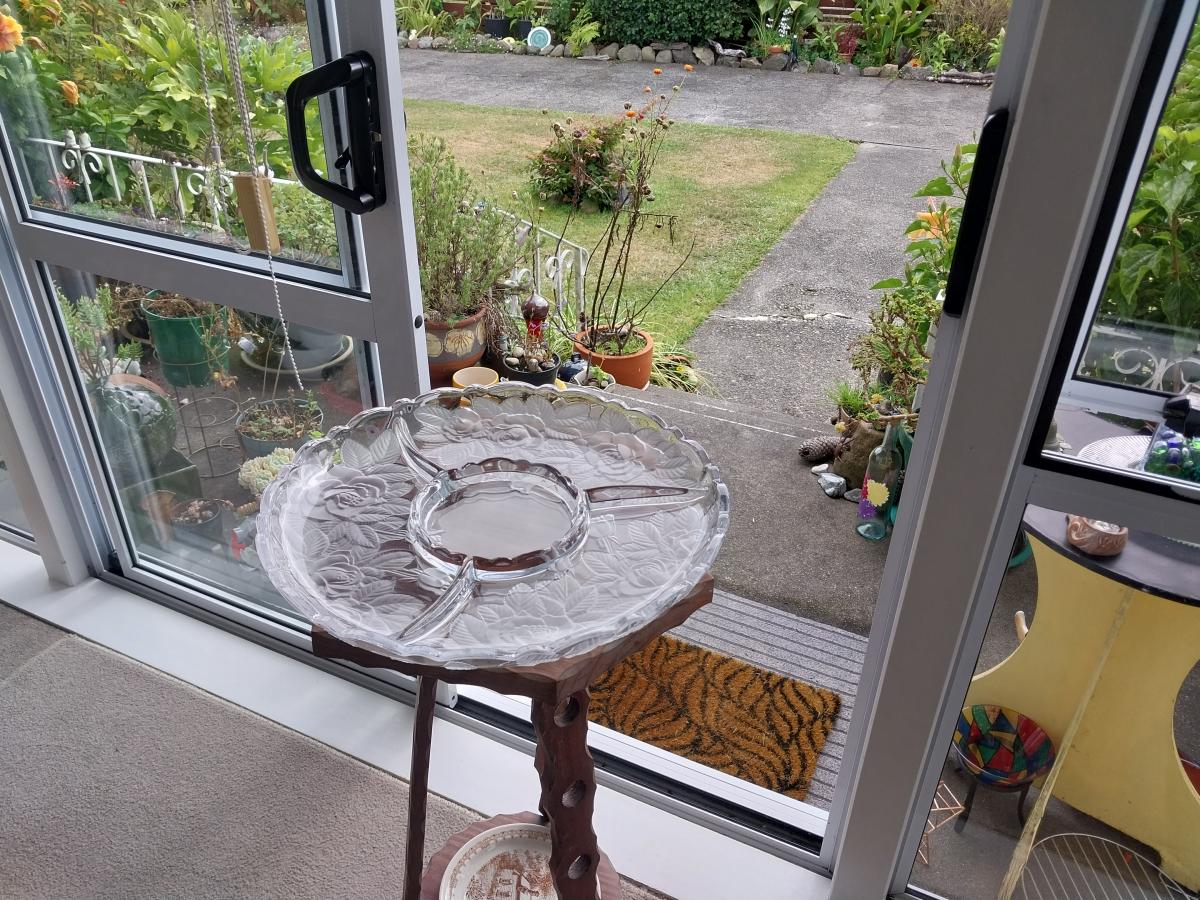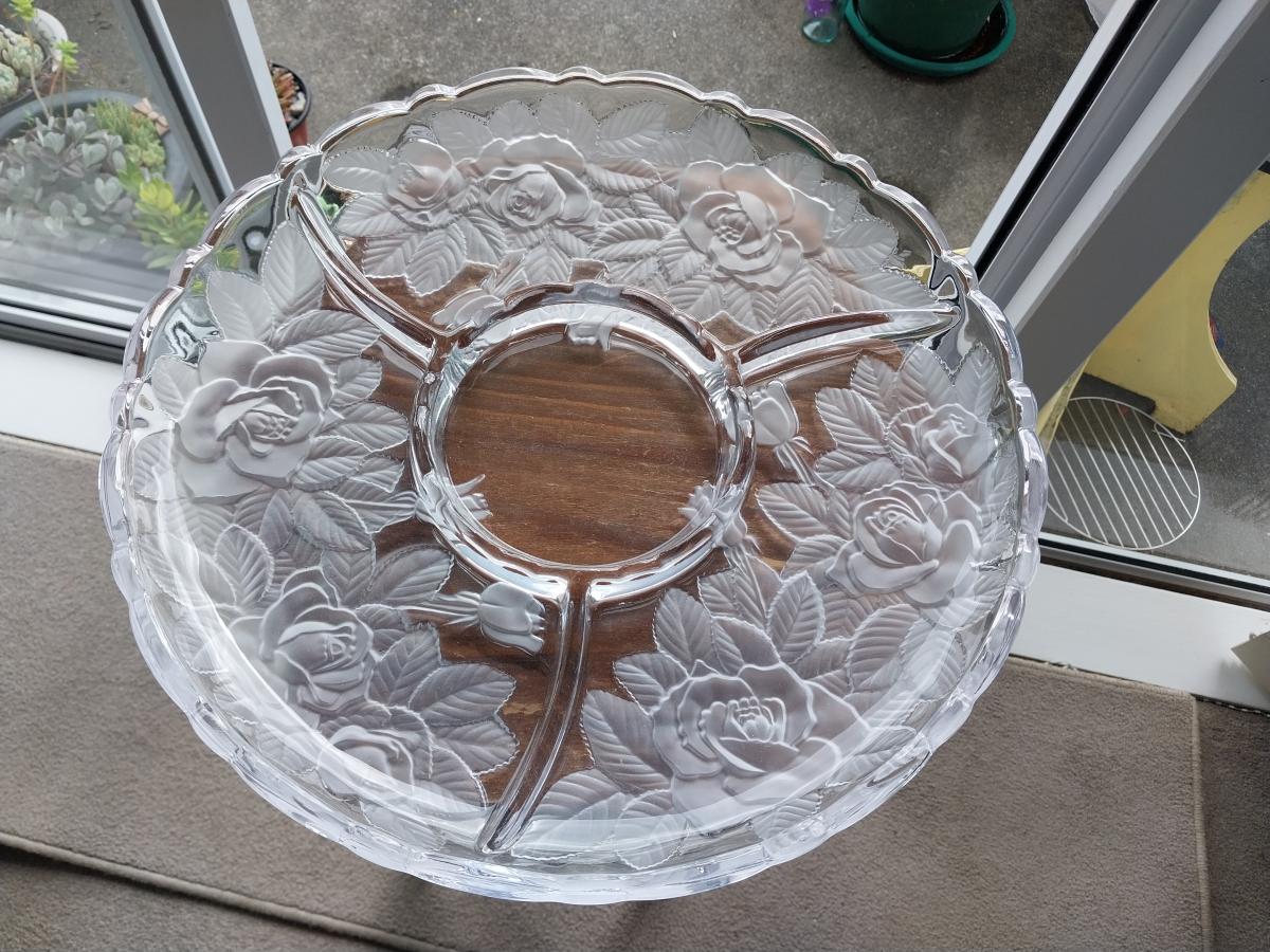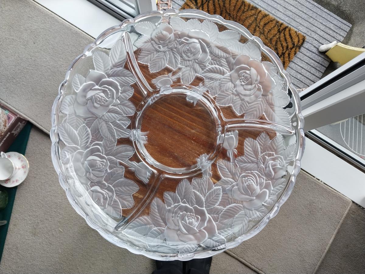 2 x heavy patterned glass platters: