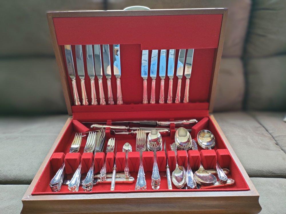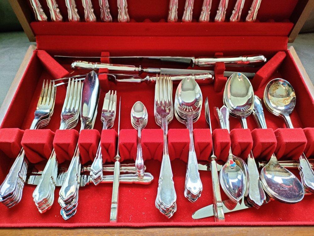 Vintage Cooper Brothers Sheffield SILVER PLATE, Du Barry Pattern, Cutlery Set in Original Wooden Box.
