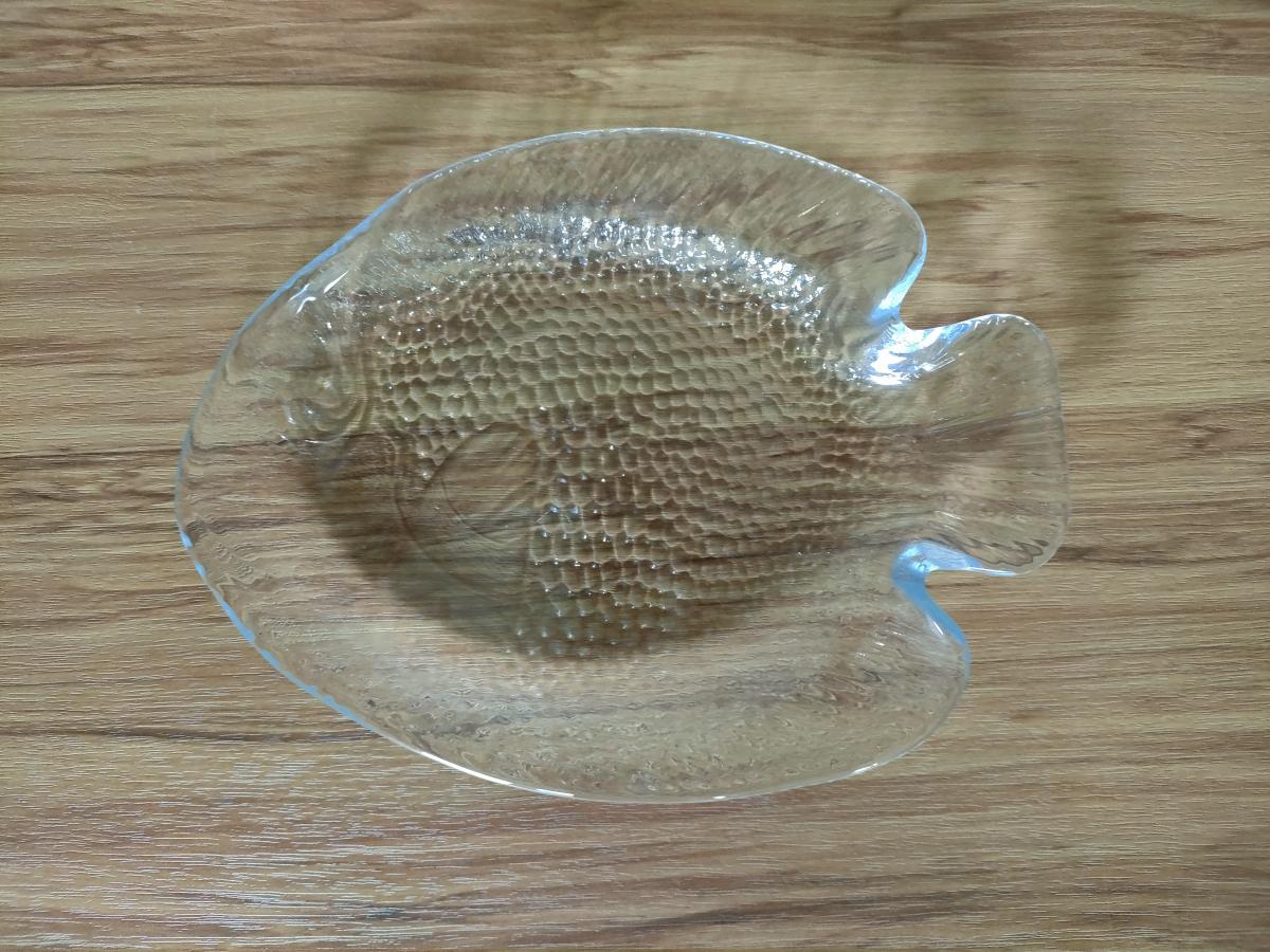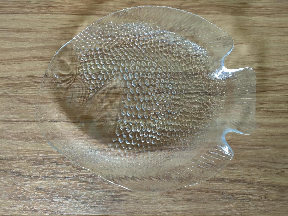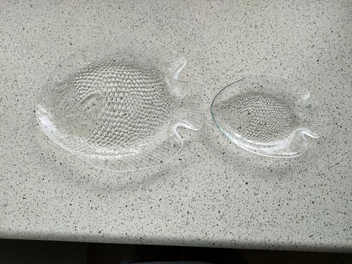 These transparent glass platters are in the shape of whole fish – fins, scales, tails and all.