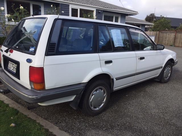 Ford Laser 1994 $1500.00 ONO 142,160ks in good condition except for the dent in the front. Only surface damage. Has been garaged and serviced regularly, current WOF. One elderly owner for the last aprox 12 years.