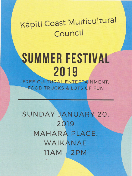 Don't forget this colourful event being presented by the Kapiti Coast Multicultural Council this Sunday -