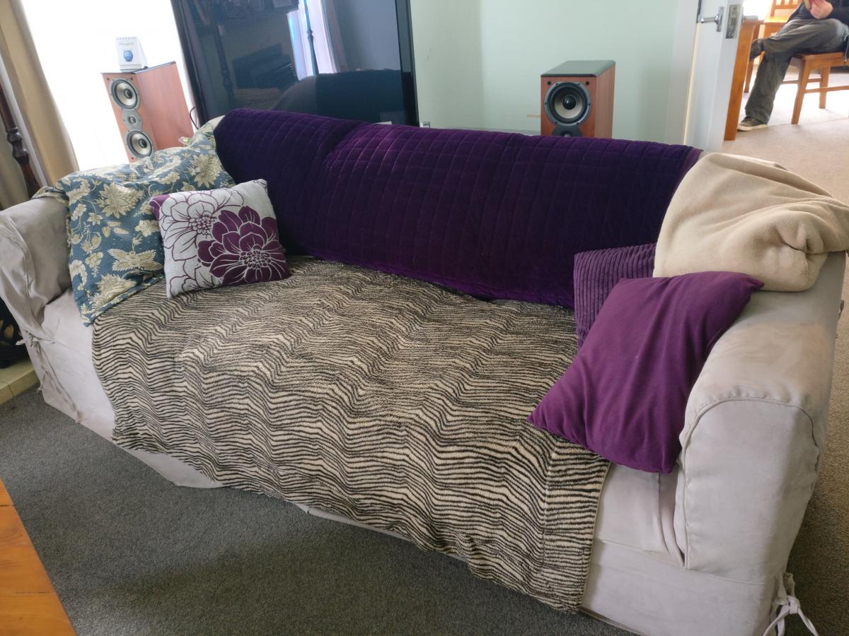 No longer needed, 3 seater, minus the cushions & throws, does come with a removeble cover, 2.3m long & 1m deep, pick up only 😀