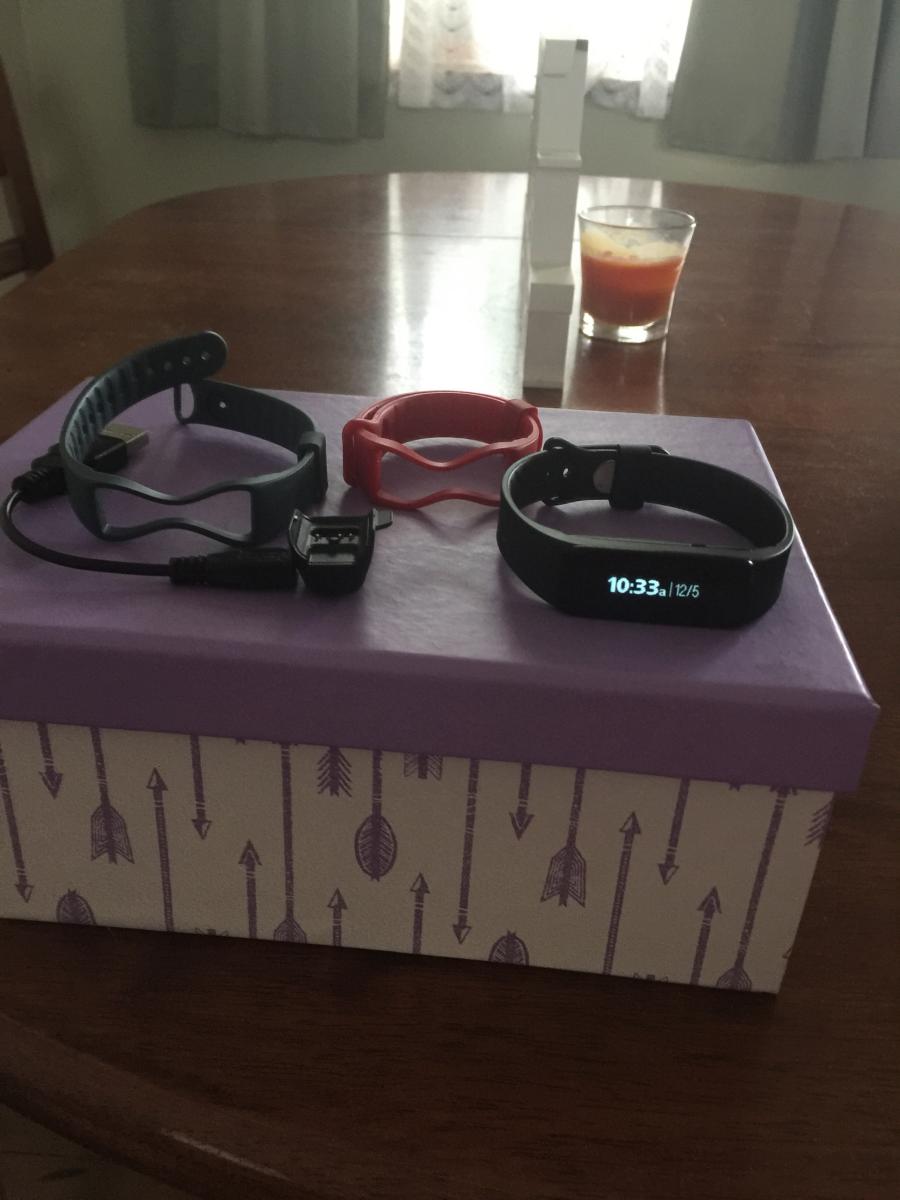 Comes with 2 other coloured wrist bands and charger!