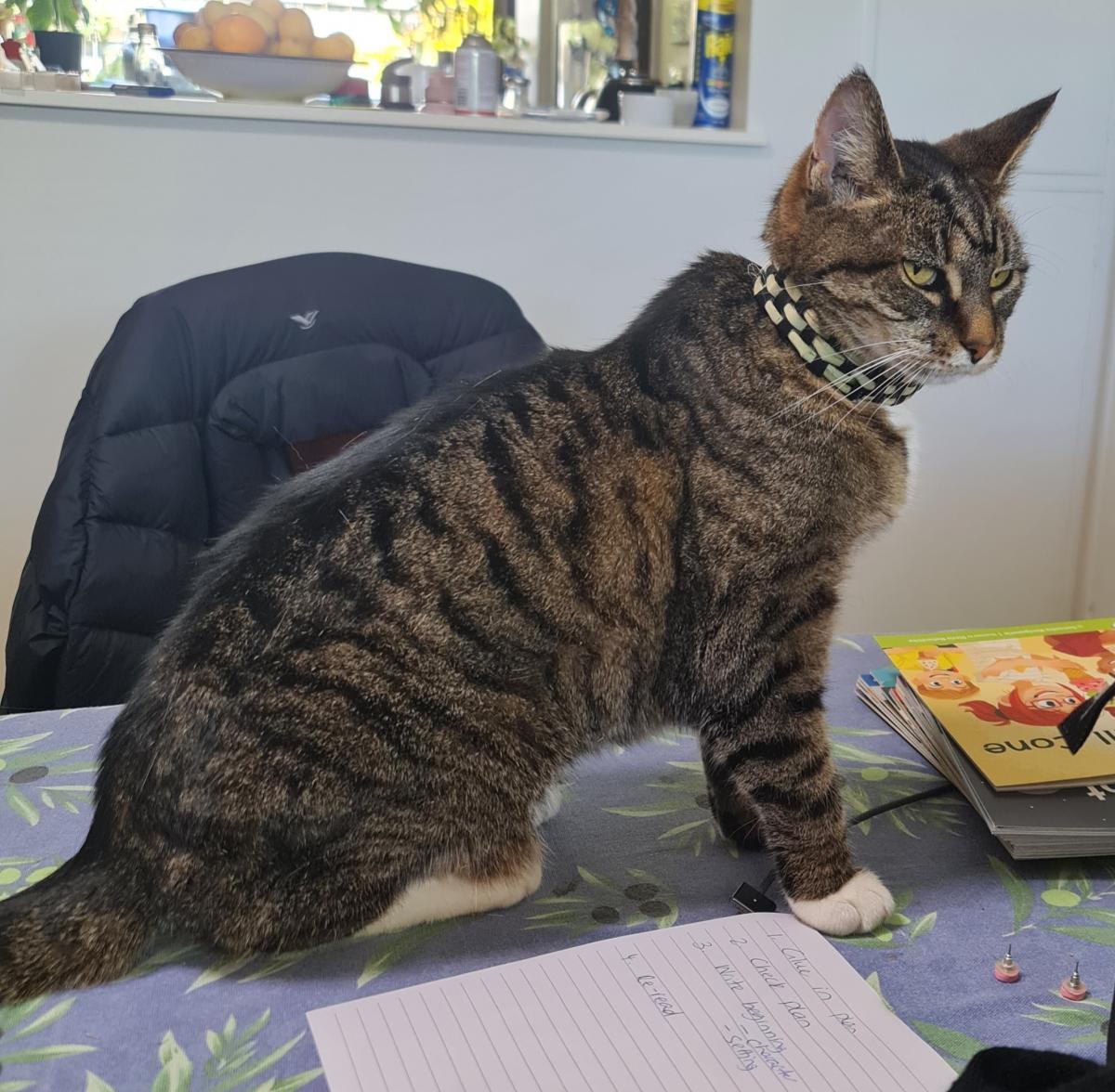 Looking for our family tabby. 16 years old. Small. Going deaf. Might answer to her name, Woody. Has been microchipped.
