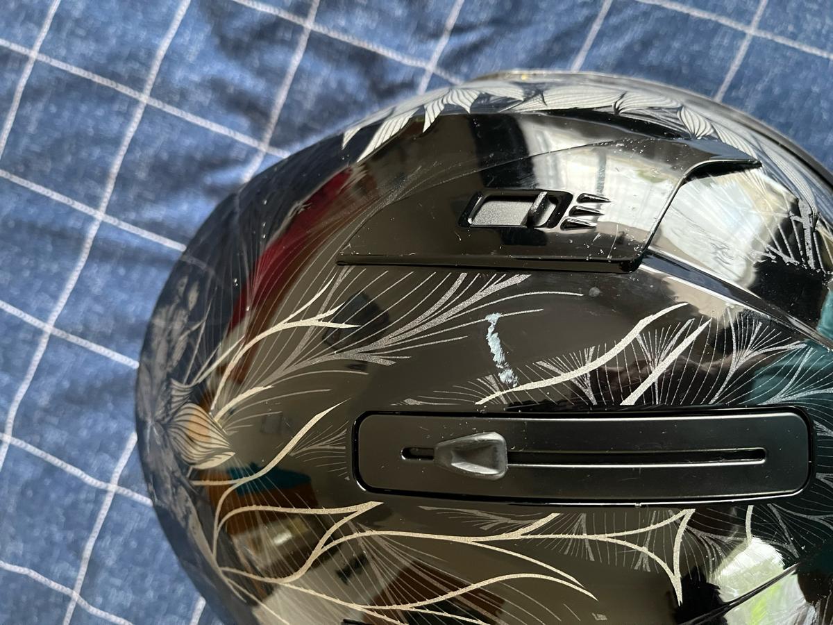 NOTE worn by a young woman on a scooter, not on a motorbike. So has not been in any crashes. She took a lot of care with it.