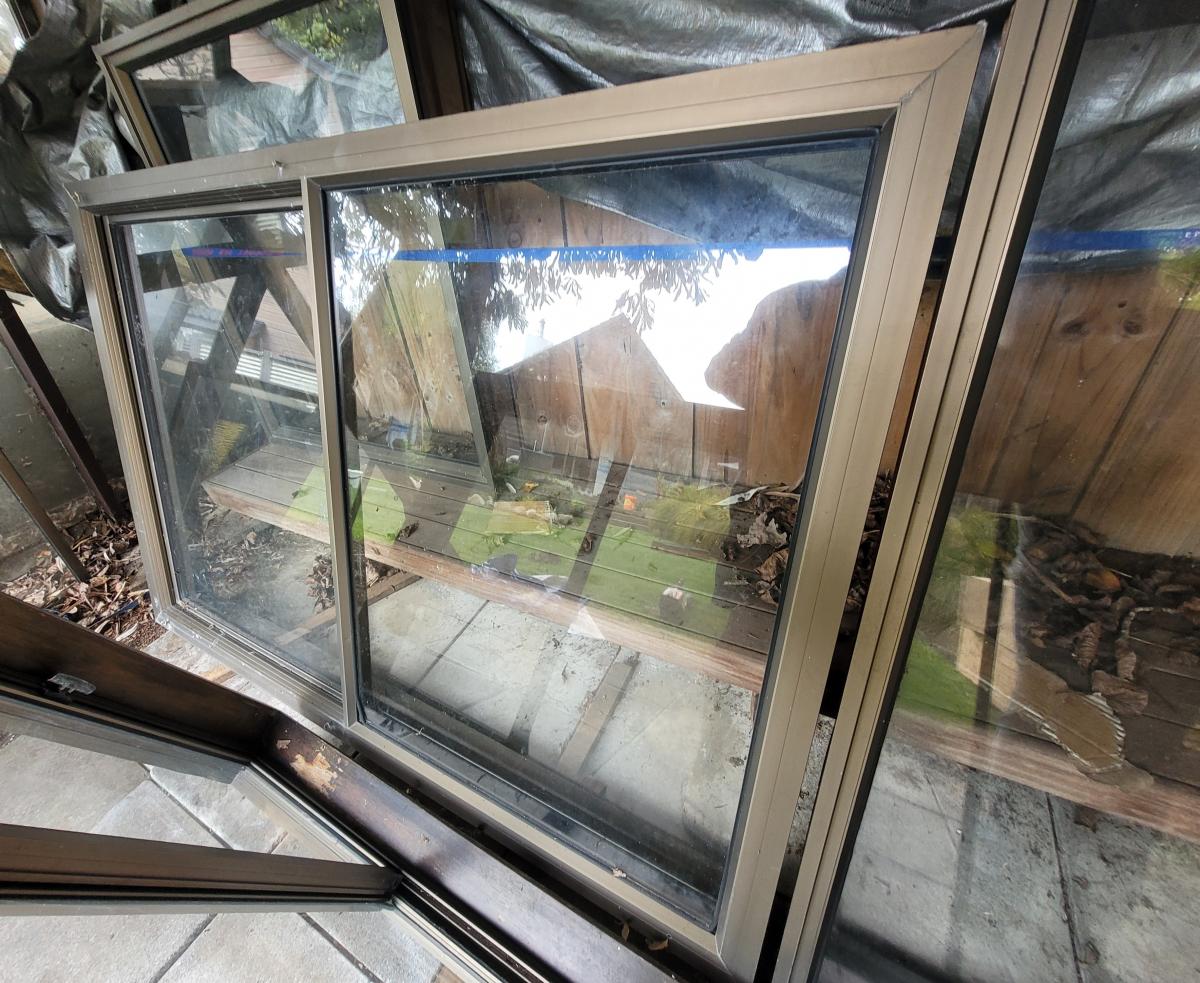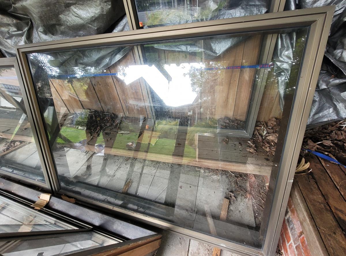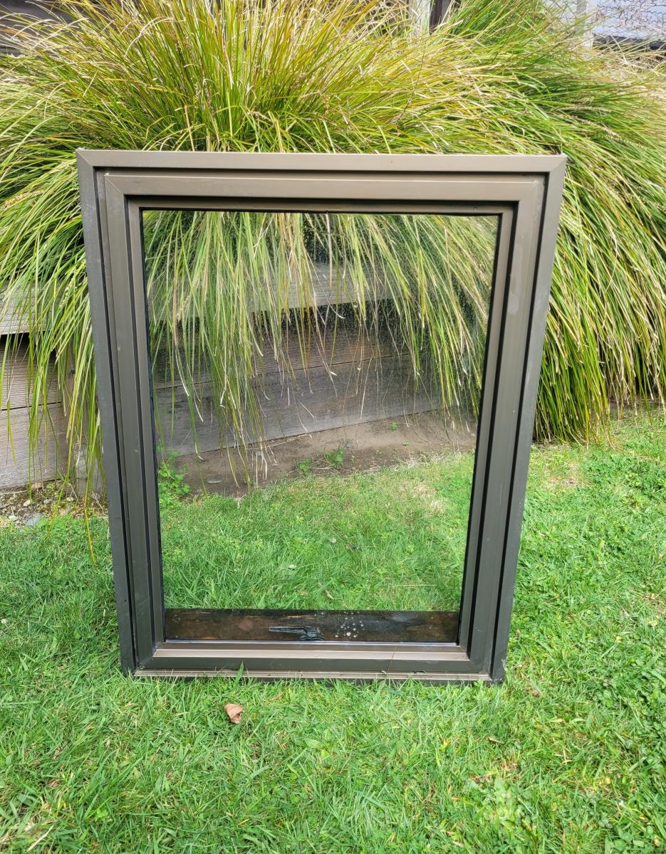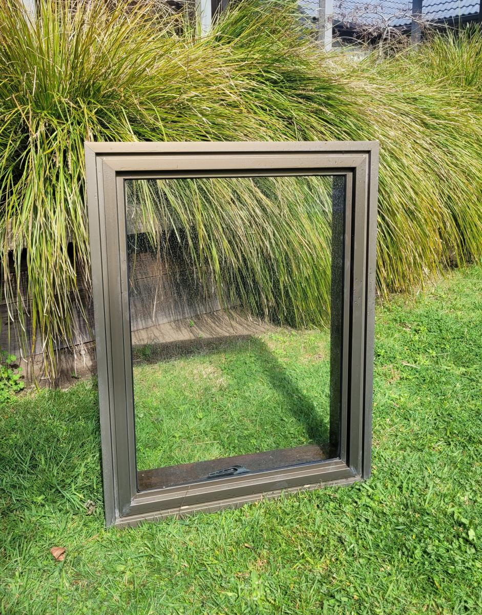 We have a number of matching, opening bronze anodised aluminium windows with 30mm thick Rimu reveals, single glazed.