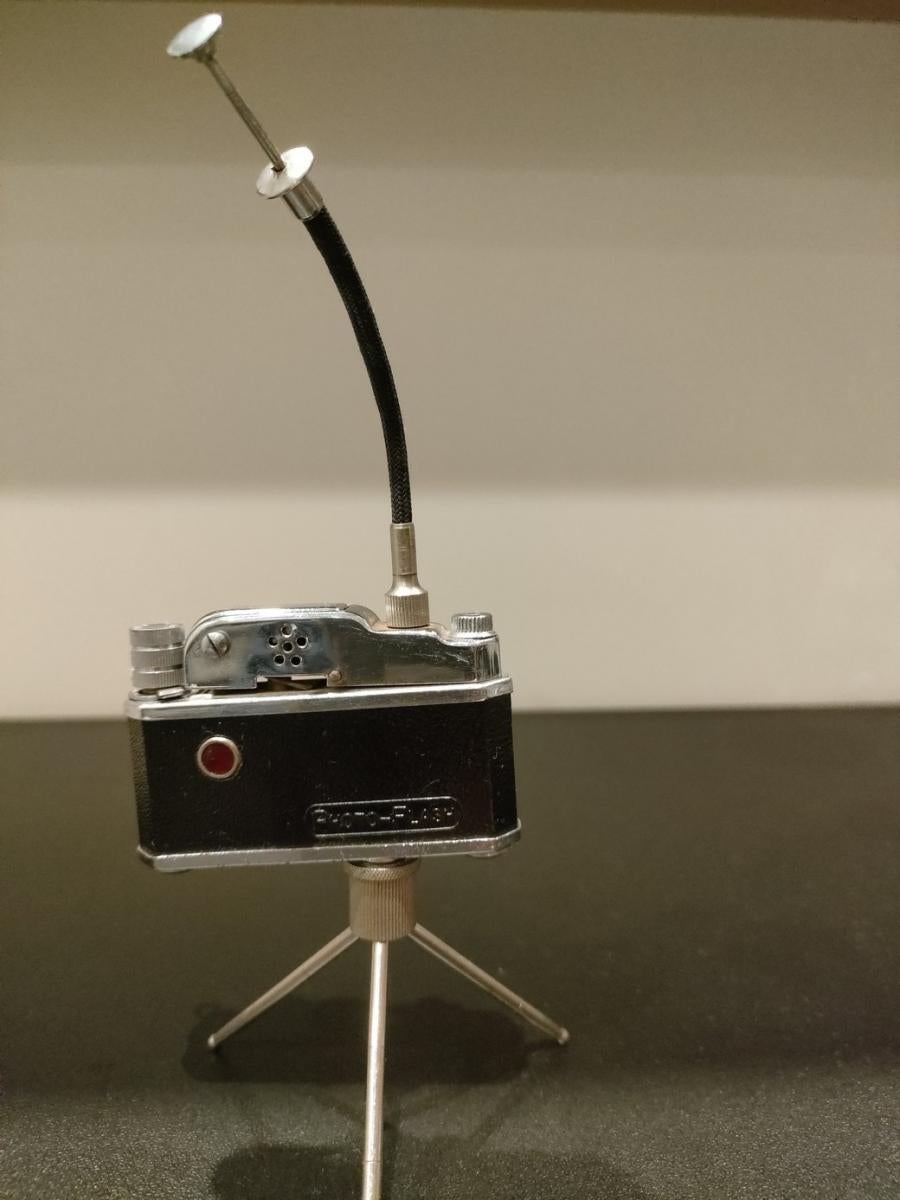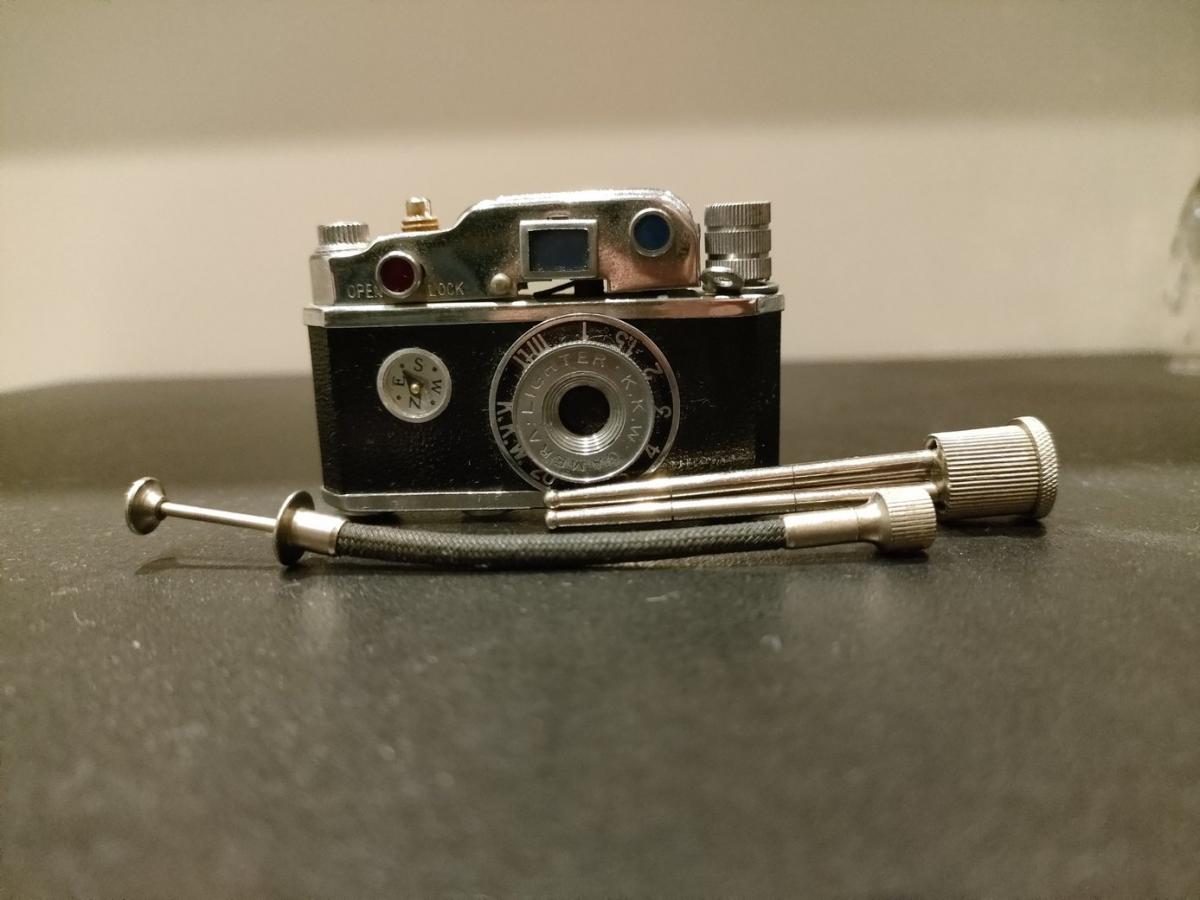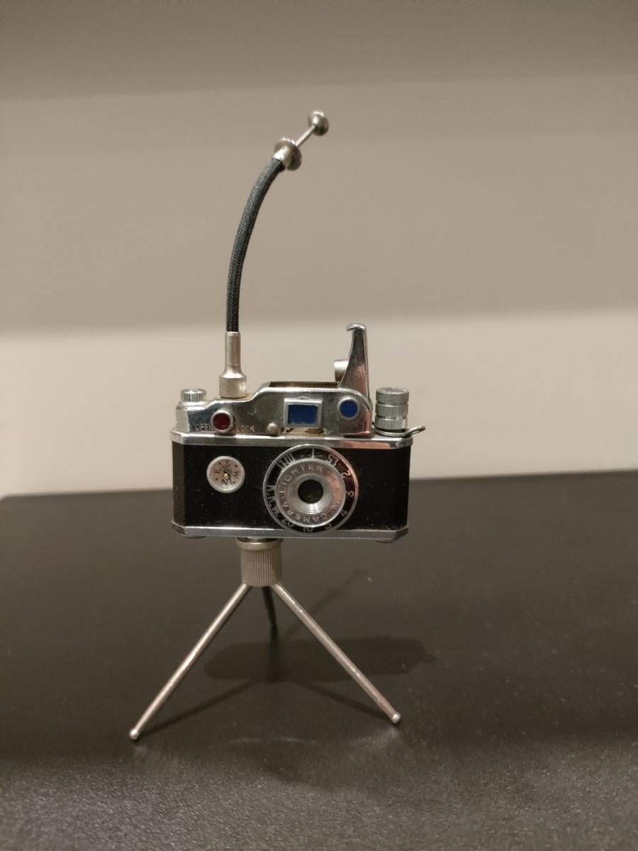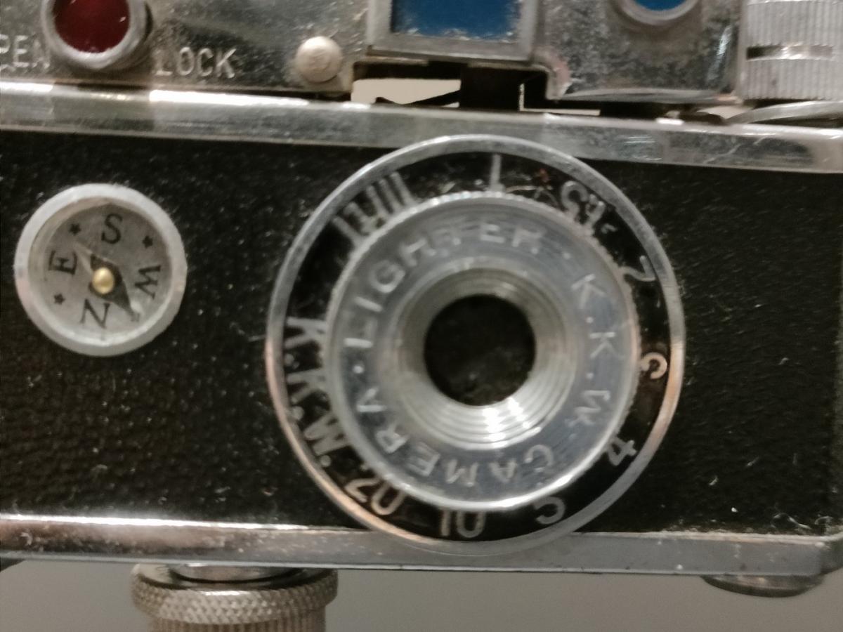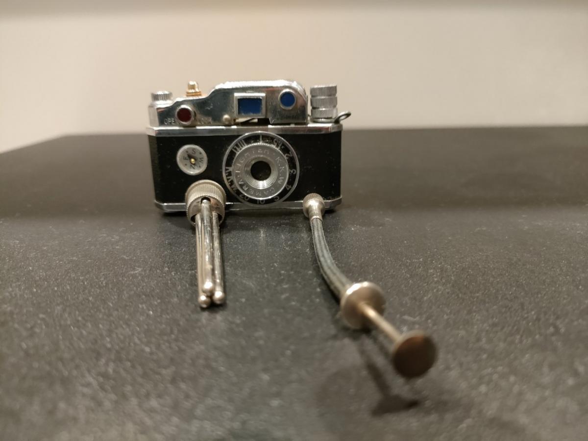 A Perfect Gift for … View moreA Vintage (1958-60) KKW Camera Cigarette / Cigar Lighter comes with its Tripod and its Trigger Cable. It also has a compass on its face. This adds to its value.