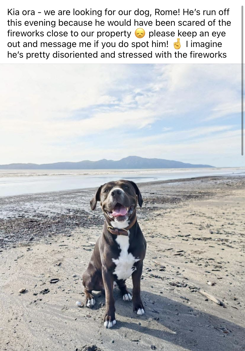 Perhaps an option long talked about, but not happening here in Paraparaumu, is to have one central place where we have a fireworks display, to cut down on collateral damage done to wild life and pets. Cheaper and safer all around. Ideally it would become a community affair, an event that bonds neighbours together. If people are keen i will contact the council and get the ball rolling to get an event organized. Assuming the council will stump up with the money.
