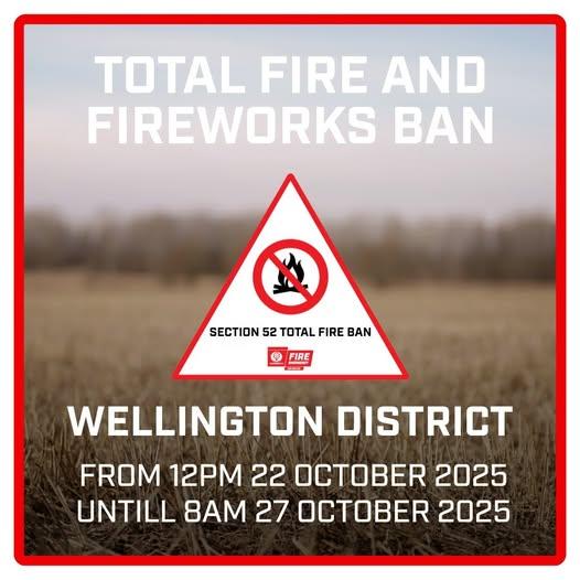 There is now a fireworks and fire ban in place with the Red Wind Warning. Read the flyer for dates and times. The 12pm today is from lunchtime