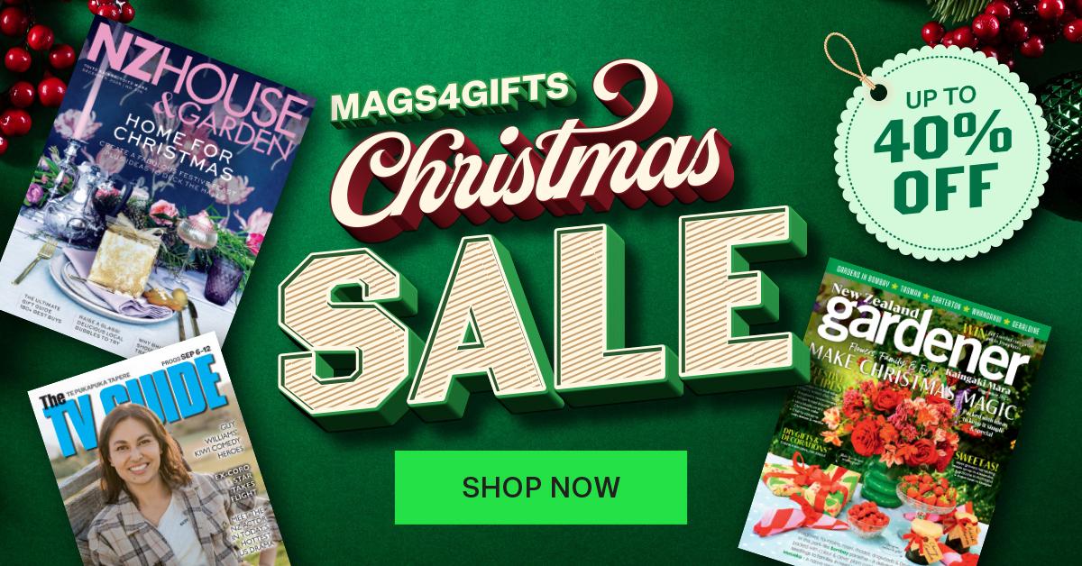 Mags4gifts.co.nz is having a Christmas sale with up to 40% off best-selling magazine subscriptions, including NZ Gardener, NZ House & Garden and TV Guide. Add a free e-card at checkout and schedule it to arrive on Christmas morning for a perfectly timed surprise! Make Christmas thoughtful this year with a gift that lasts long after the holidays are over.