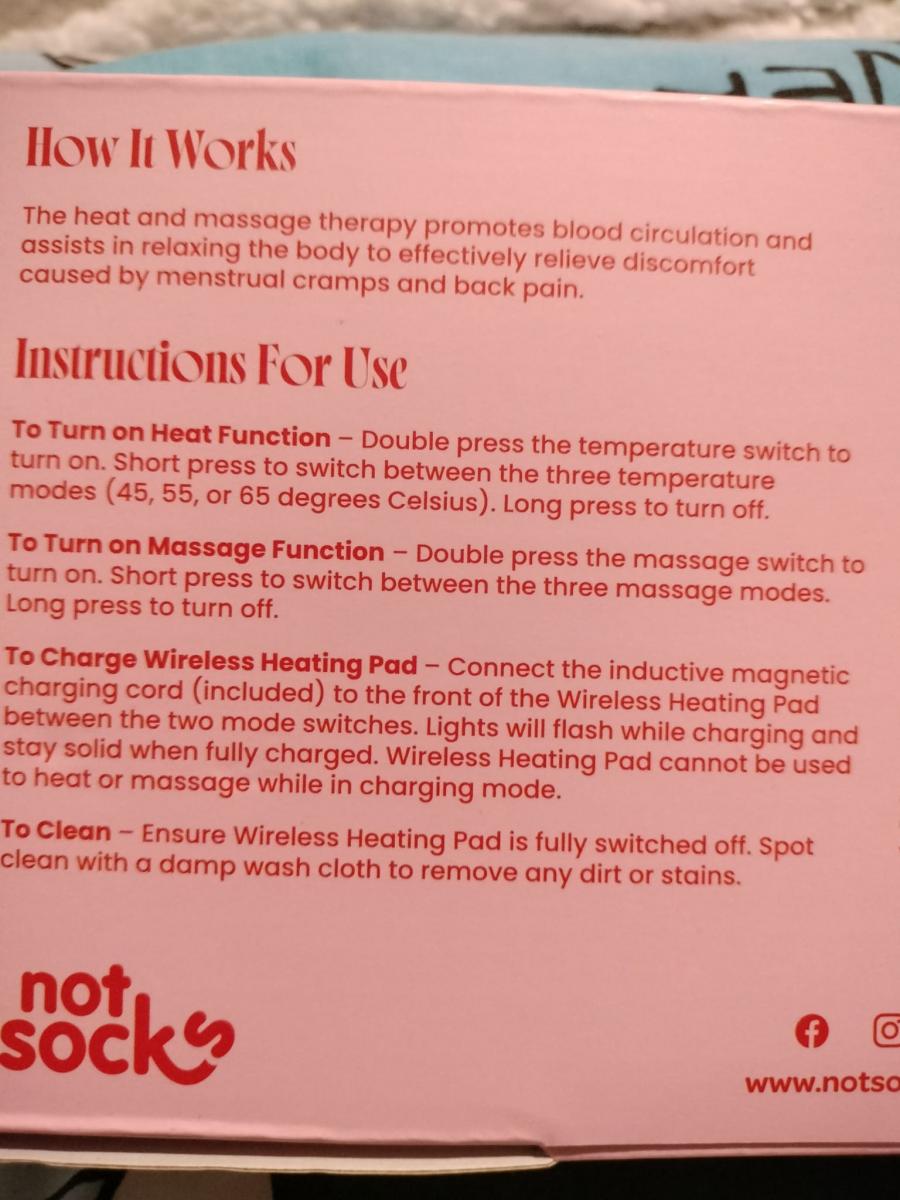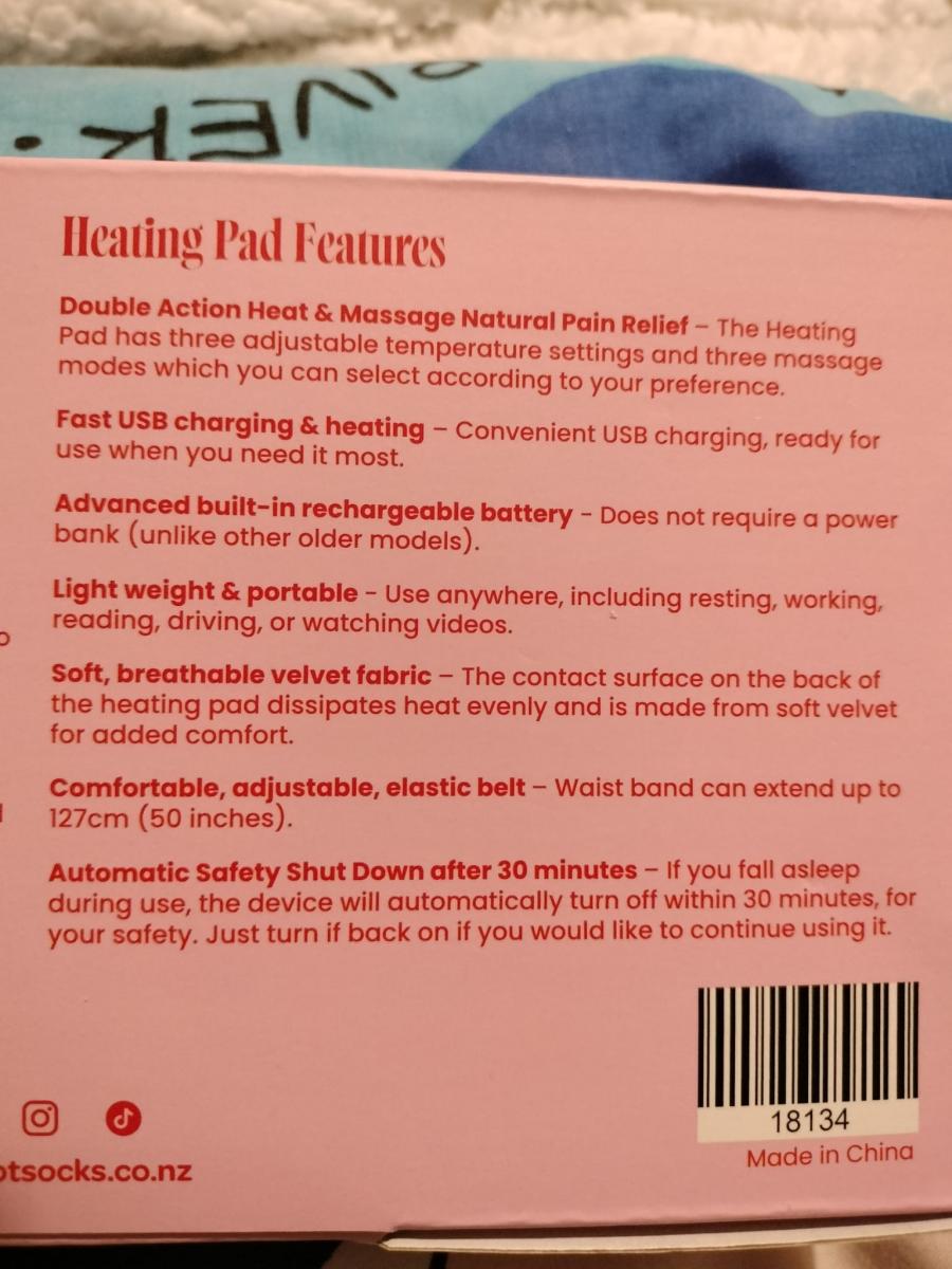 Wireless Heating Pad for deep heat massages for thermal relief of aches and pains, particularly suited for women.