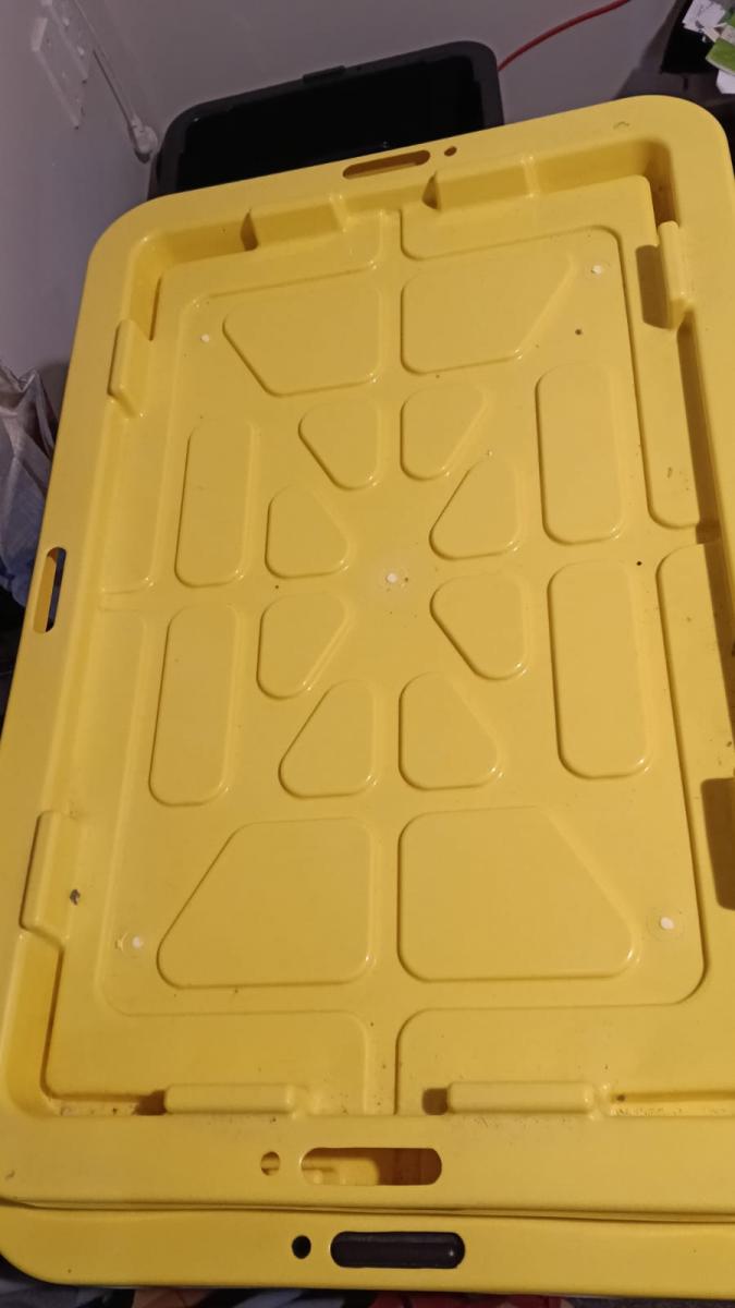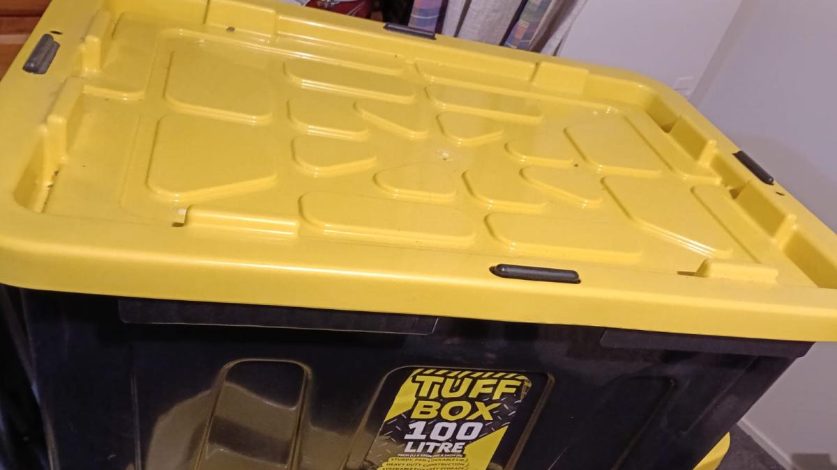 Waterproof, stacks well, and tight seal on lid, unlike the Number 8 … View moreMint condition Tuff Box (not the cheap and poor quality Mitre10 knockoff Number 8) heavy duty storage box in black and yellow lid. Only used for books in the lounge, but you could use it for tools in the garage, or kids toys.