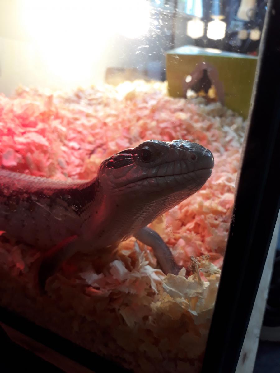 Blue tounged skink just under a year old, glass tank lights ect. If interested please contact.