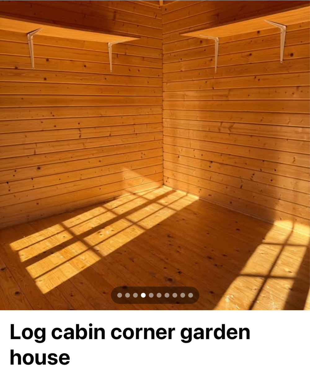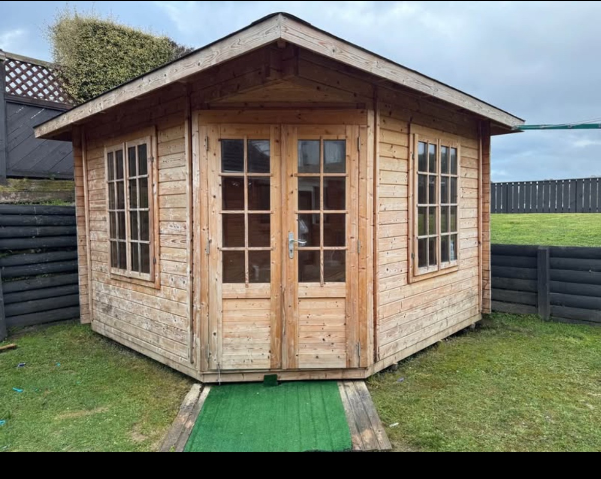 For sale, cabin garden house, great for office, or hobby home. size 3.2 x 3.2 Excellent condition inside, outside good condition. double glazed windows, double door, nordic spruce wood, was used for business, not needed any more. Can be transported, or taken down and rebuilt.