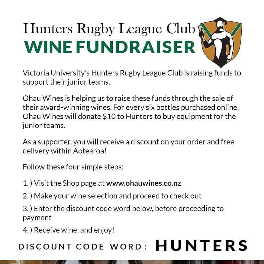 By using the promo code HUNTERS when you purchase a 6 pack of wine you will receive a discount and $10 will be donated to the club 🍾🍷